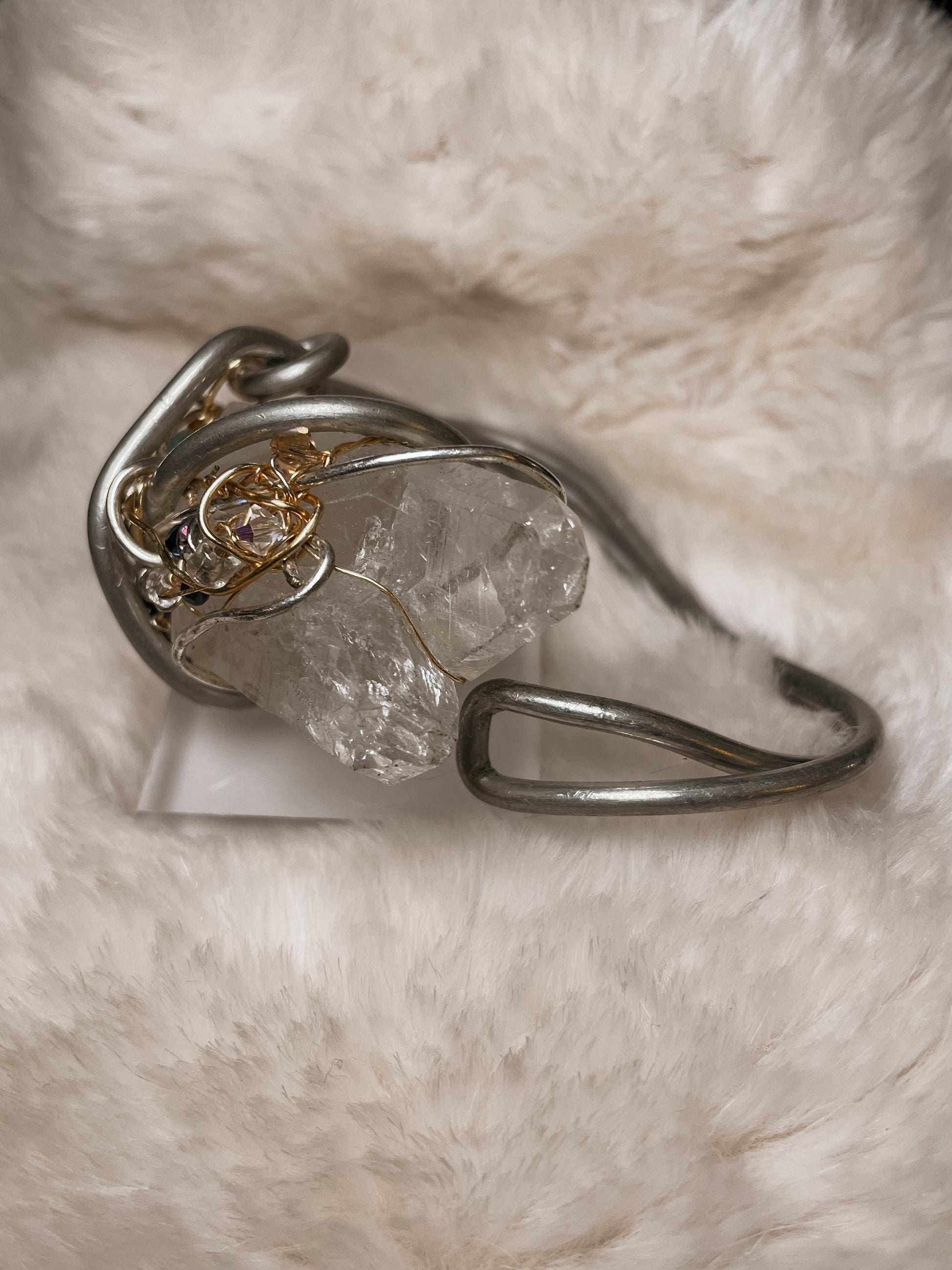 Celestial Heart Quartz is a luminous talisman of clarity, devotion, and amplified intention. At its core rests a raw Clear Quartz point — left beautifully organic to honor the stone’s natural formation. Known as the master healer, Clear Quartz acts as an energetic amplifier, magnifying both intention and surrounding stones.