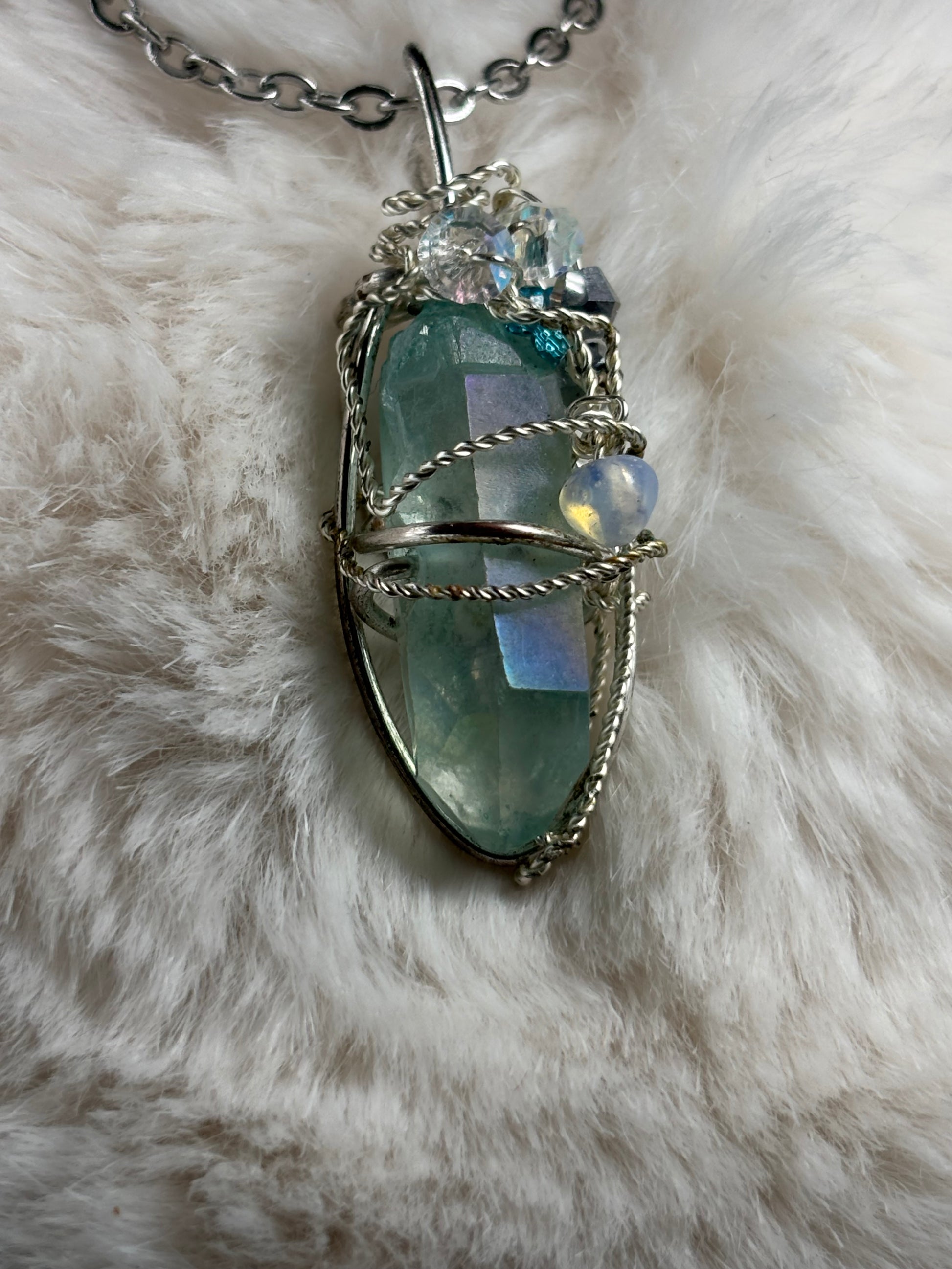 Hidden Prism, Rainbow Magic: green radiated crystal pendant