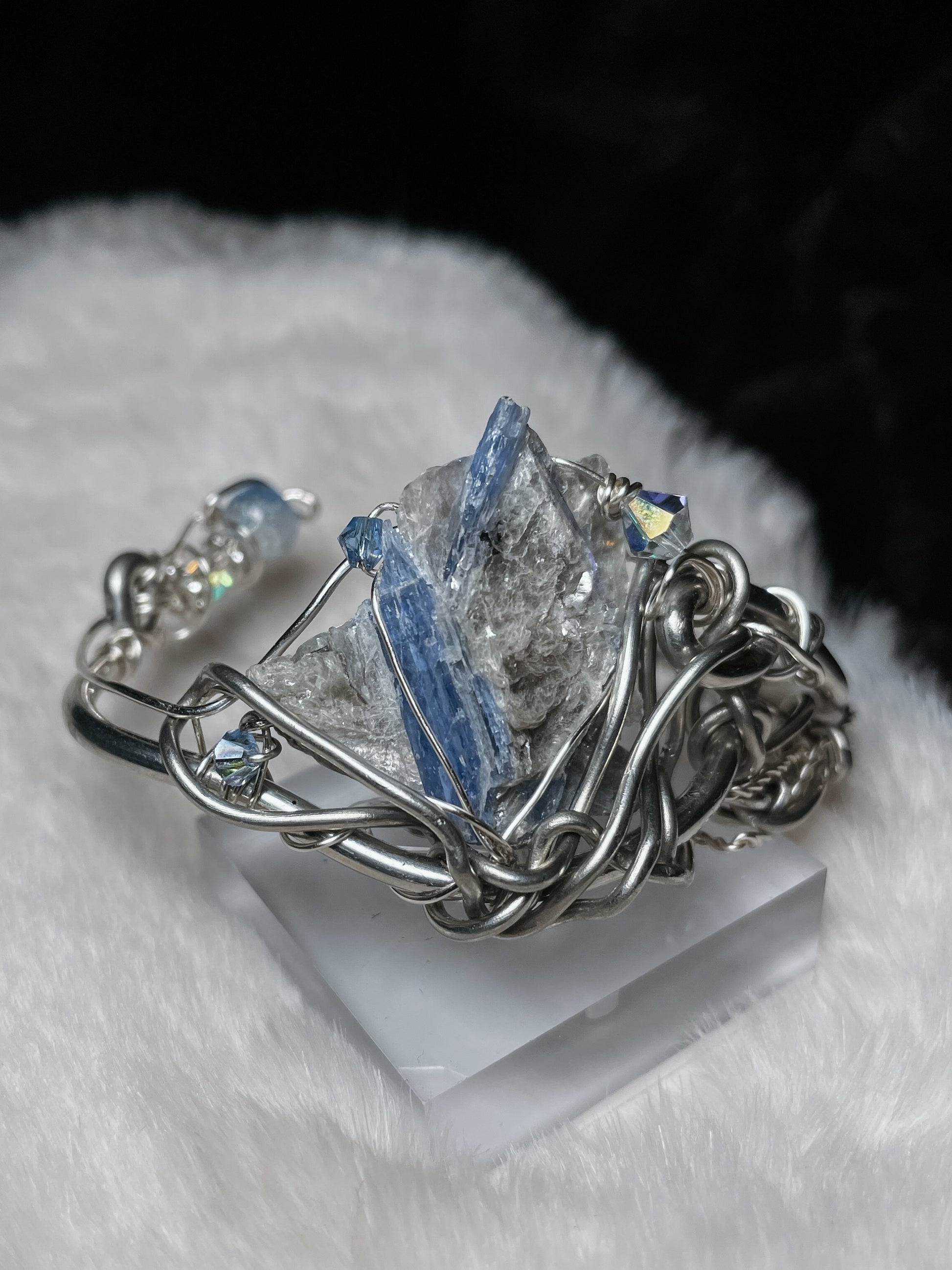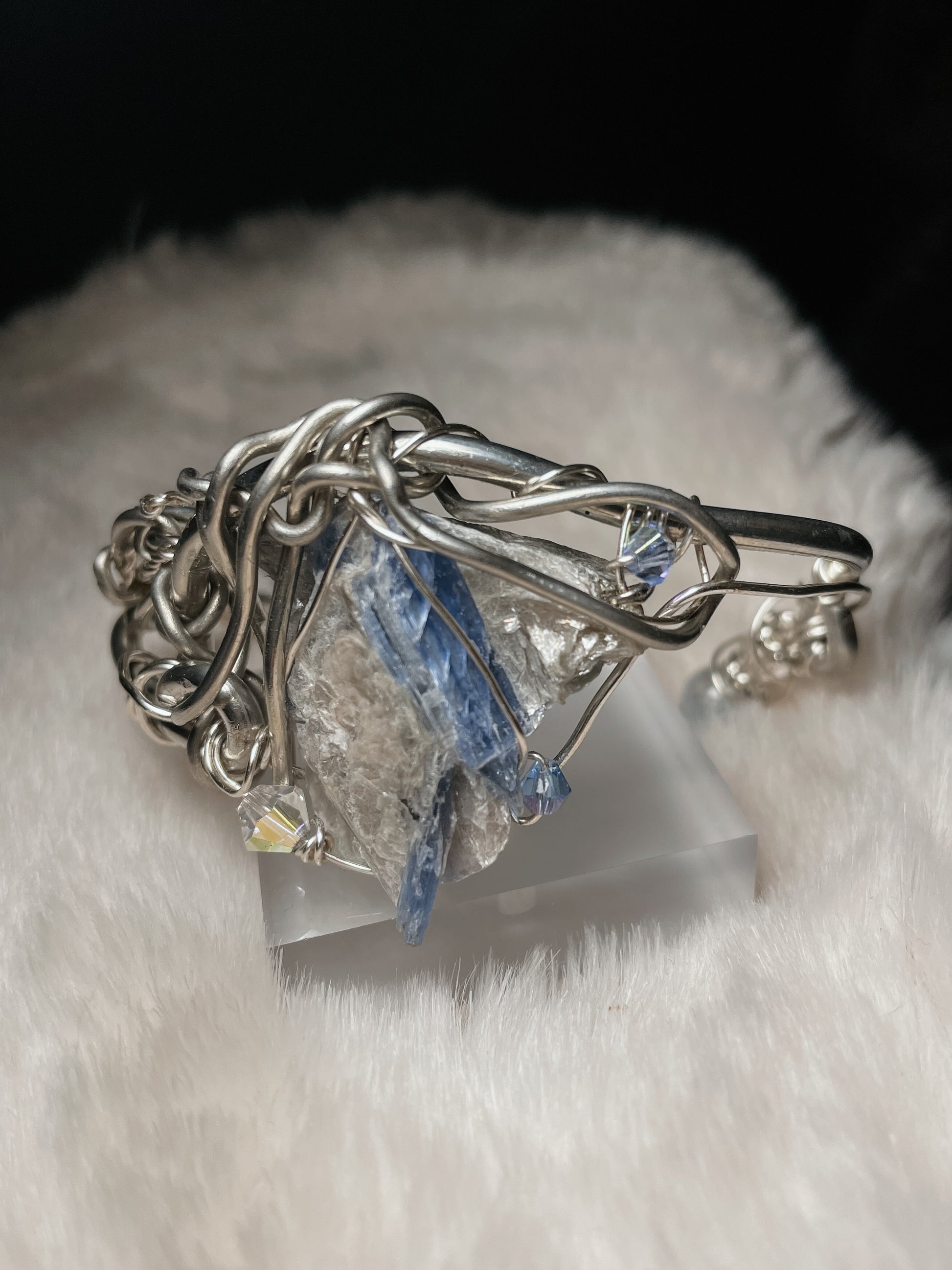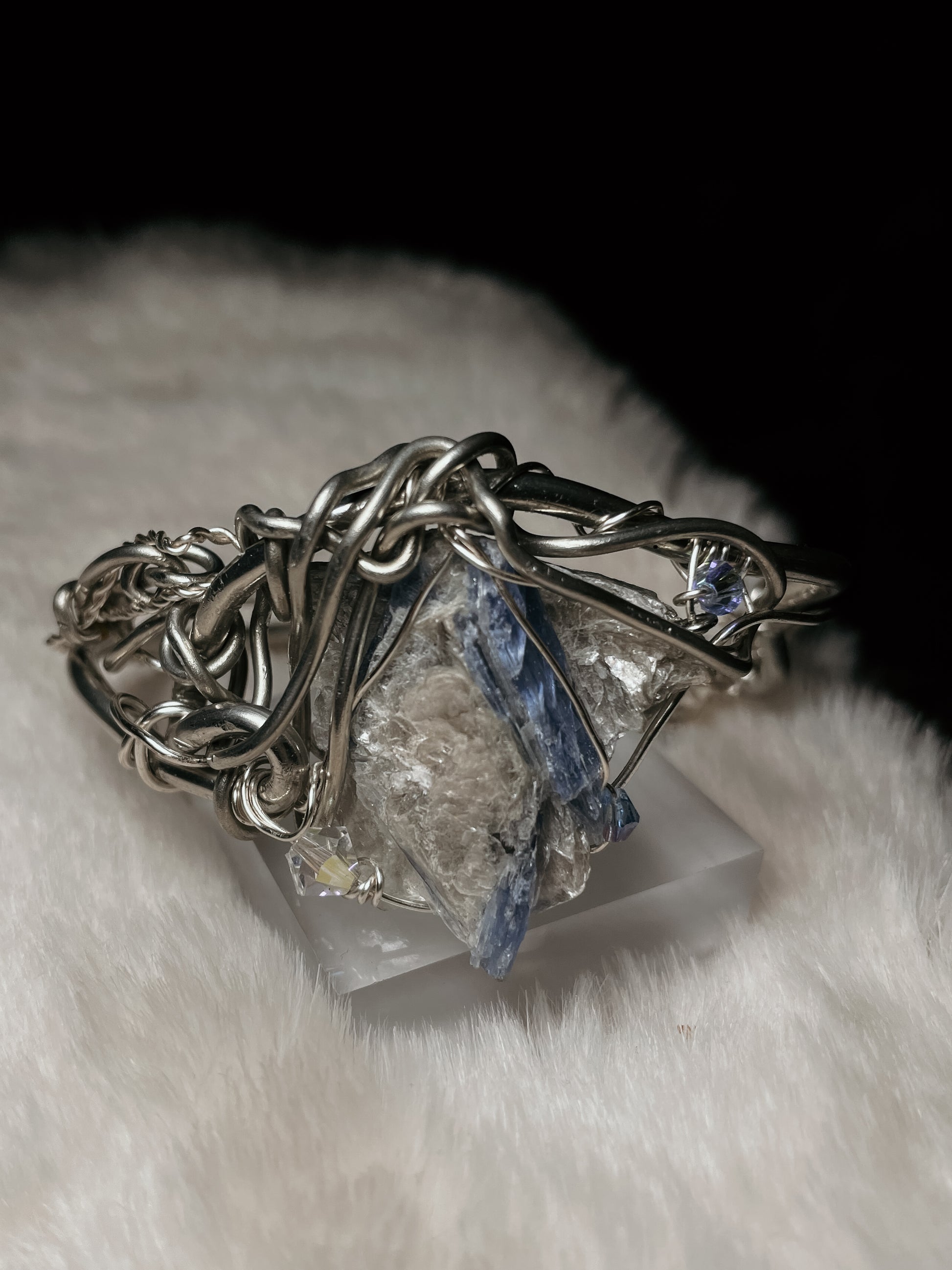 Highspire is a one-of-a-kind, handcrafted crystal cuff inspired by mountain citadels and elevated realms of thought. Designed to be worn multiple ways, this piece allows different facets of the stones to take center stage depending on how it’s styled—each orientation shifting the energetic emphasis from grounding to clarity to expansion.