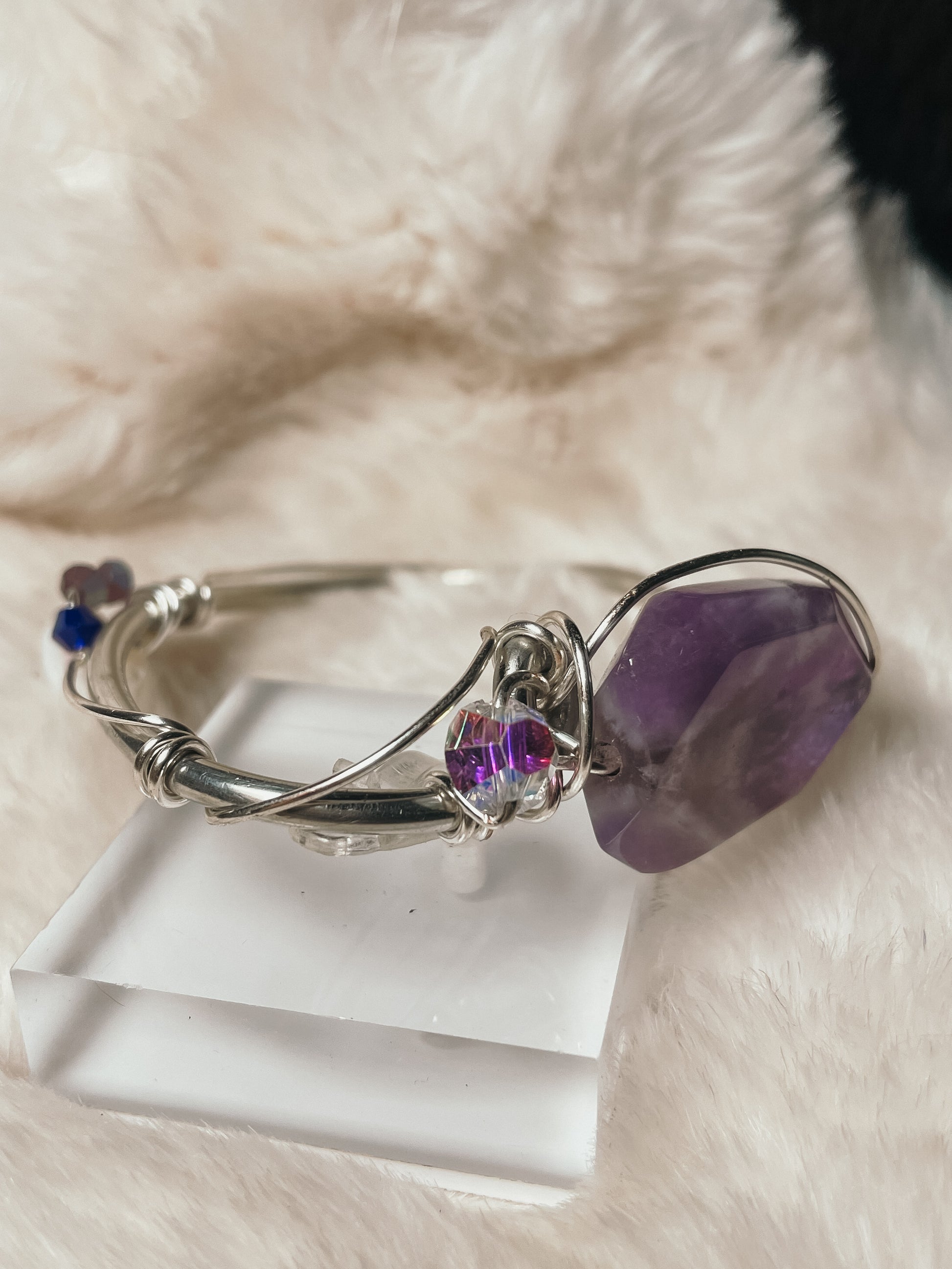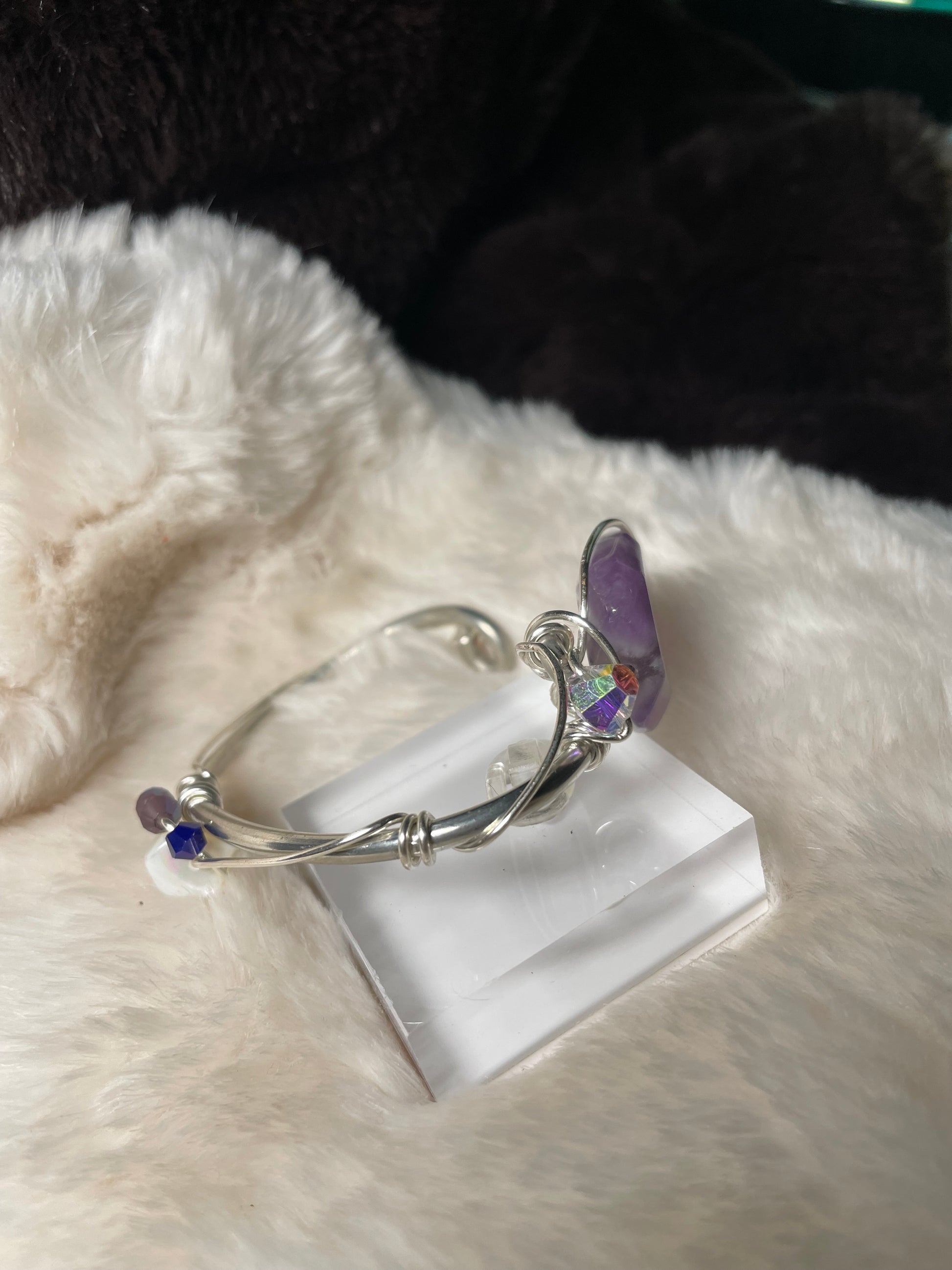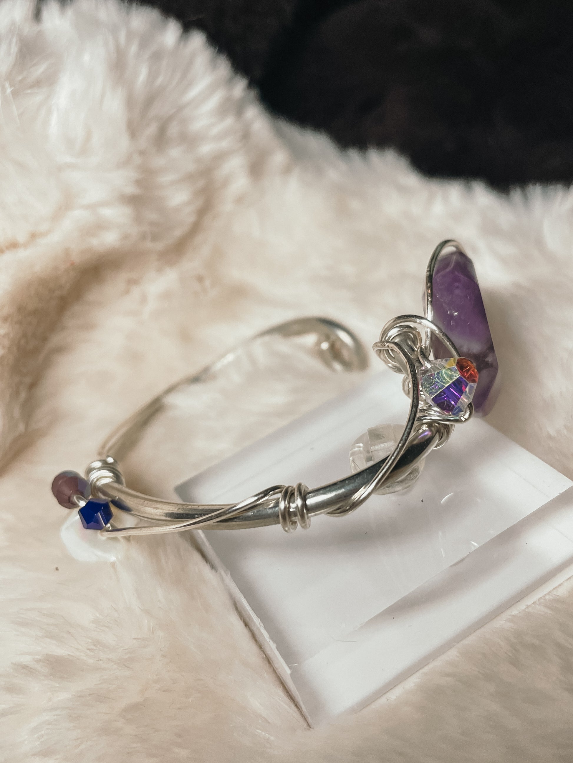 Purple Haze is a bracelet born from intuition, imagination, and altered perspective — a quiet rebellion against the ordinary. Inspired by the electric mysticism of Hendrix’s soundscape, this piece invites you to see beyond the surface and trust the rhythm of your inner world.