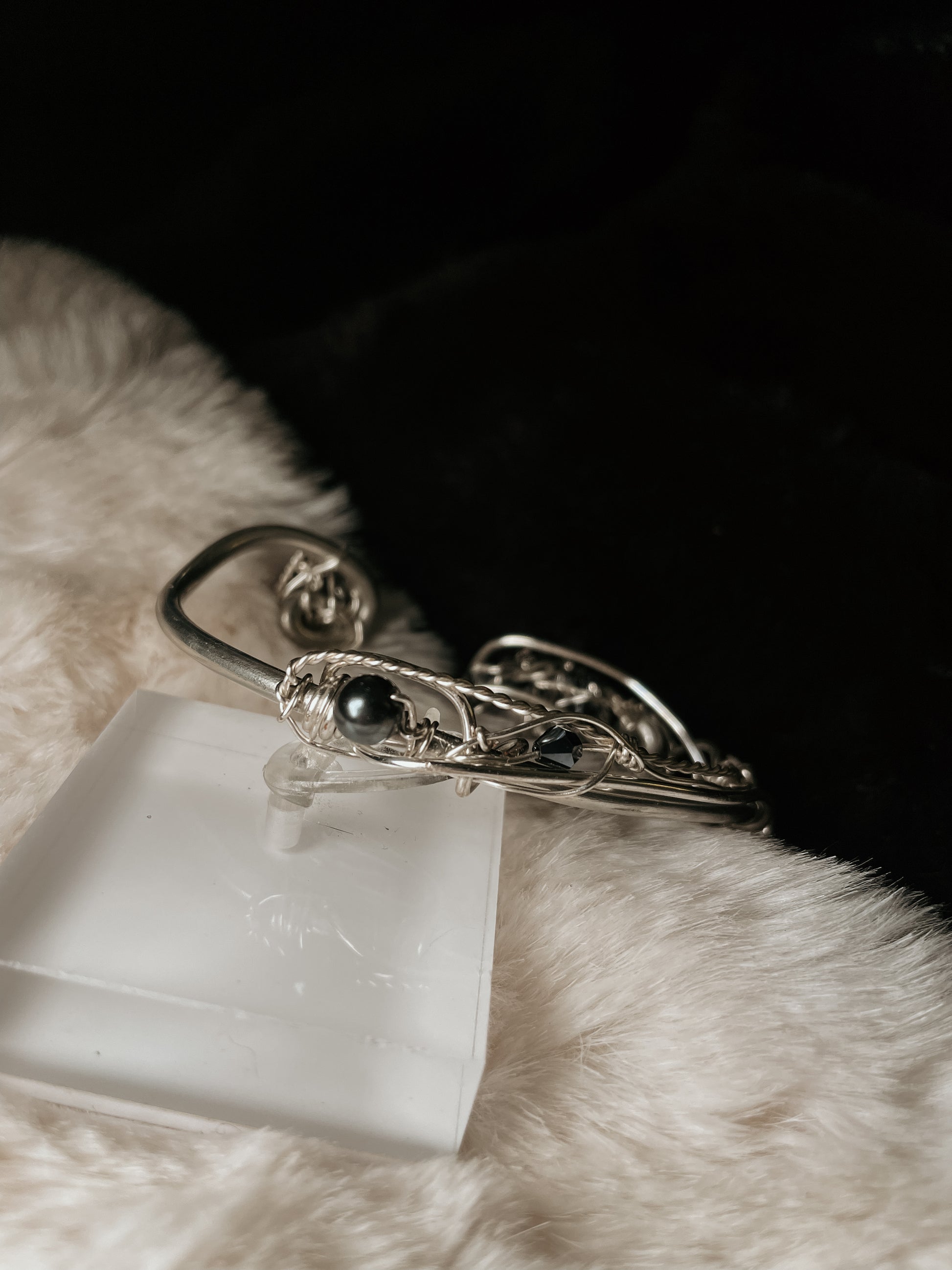 The Dark Crystal Bracelet is handcrafted in Argentinian silver and centered around a raw black tourmaline crystal that naturally contains silver deposits infused within the stone itself. These metallic inclusions are formed by nature, creating a rare fusion of grounding crystal and conductive metal — protection and strength combined at the source.