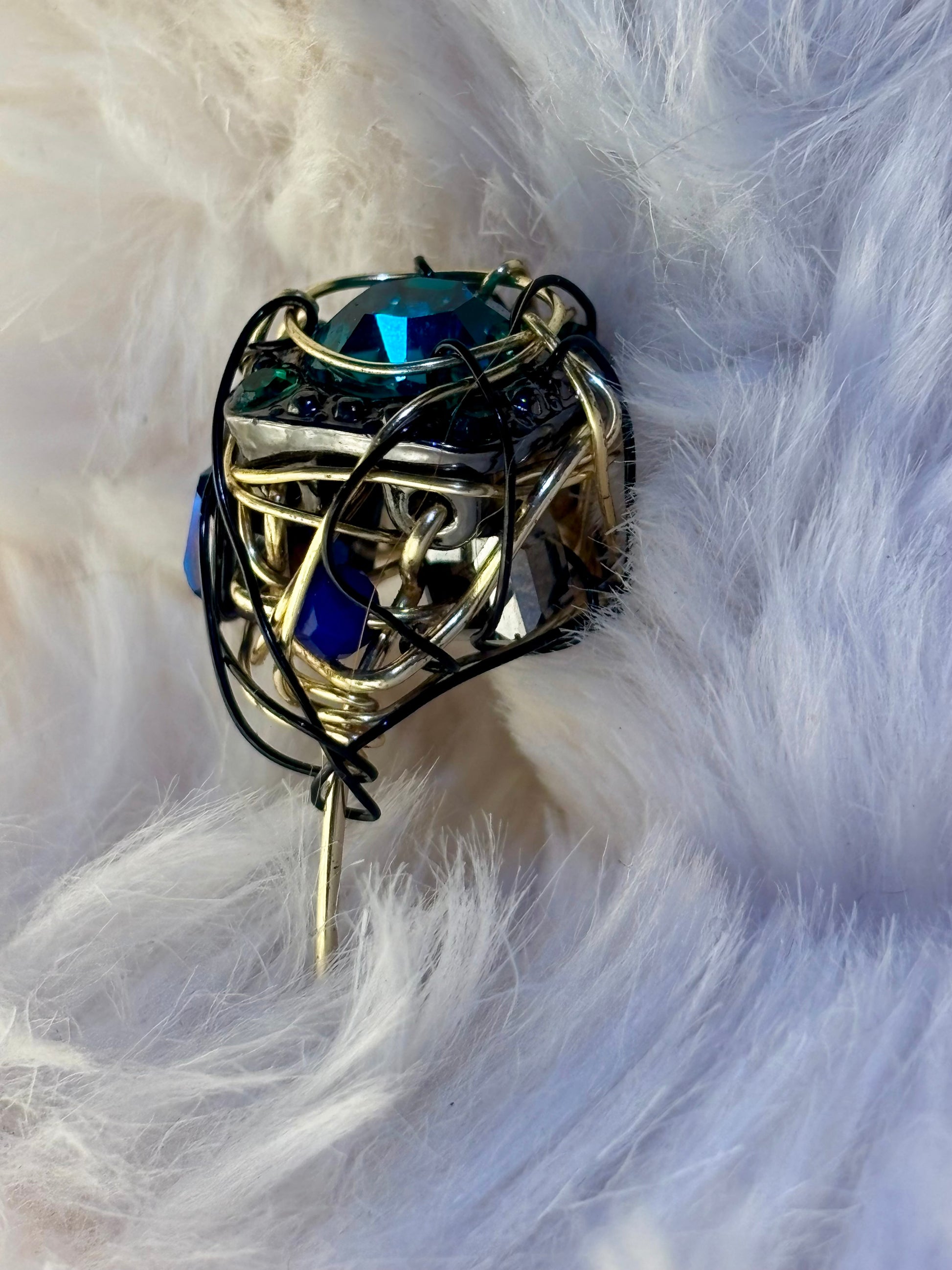 Turquoise green rhinestone ring