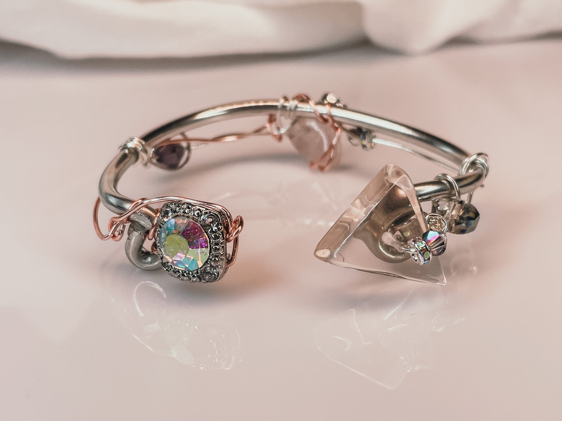 “ A True Princess" bracelet - a piece of jewelry fit for royalty. Made with hypoallergenic artesian silver, light pink crystals, rose quartz, and opalescent rhinestones, this bracelet is a true masterpiece. The delicate pink hues and sparkling stones create a look that is both elegant and feminine. Whether you're dressing up for a special occasion or adding a touch of glamour to your everyday look, this bracelet will make you feel like a true princess. Don't miss out on the opportunity to own this exquisite piece of jewelry - the "True Princess" bracelet is truly one of a kind.