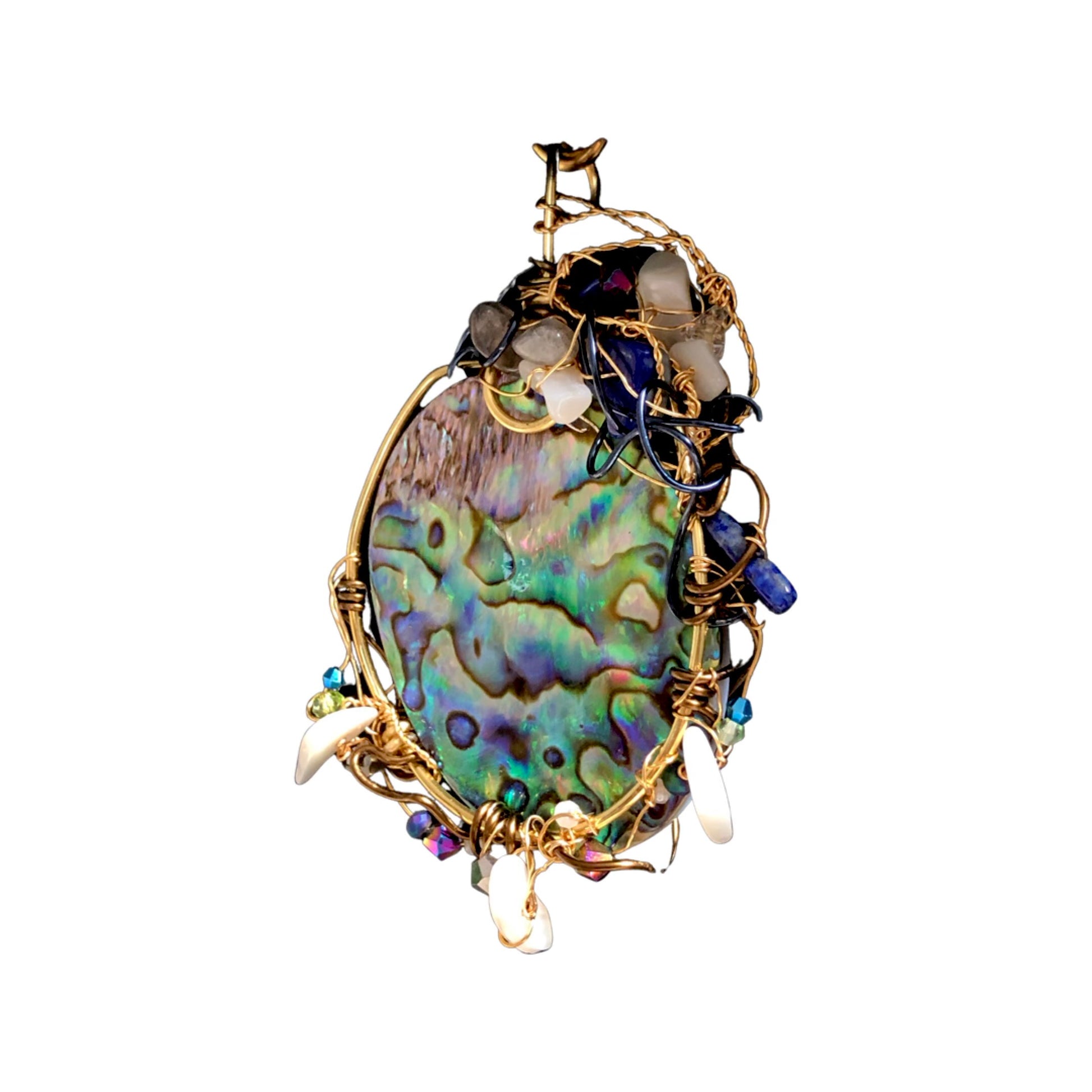 This beautiful necklace is adorned with abalone, lapis, mother of pearl, Black onyx, labradorite, crystals .