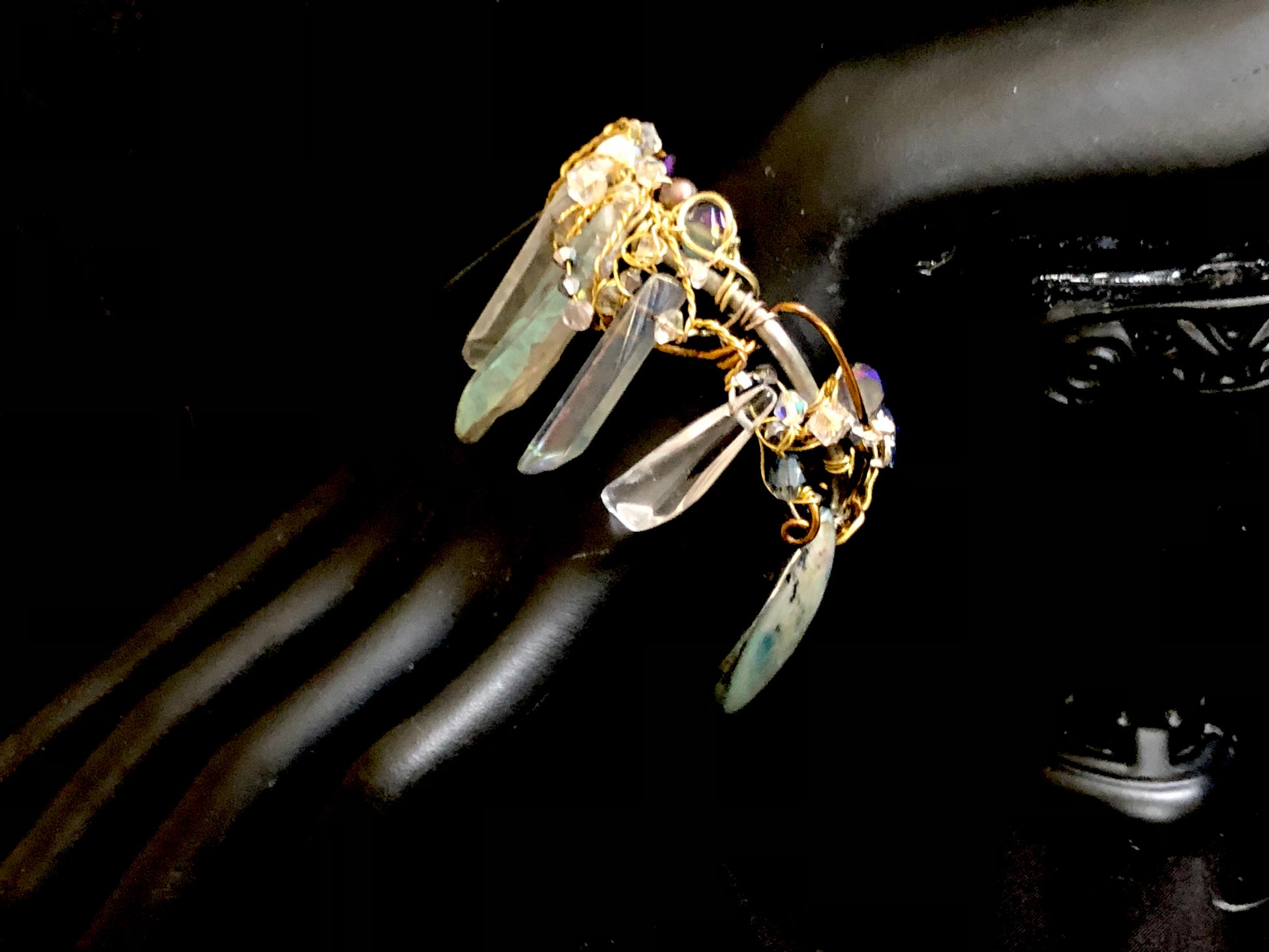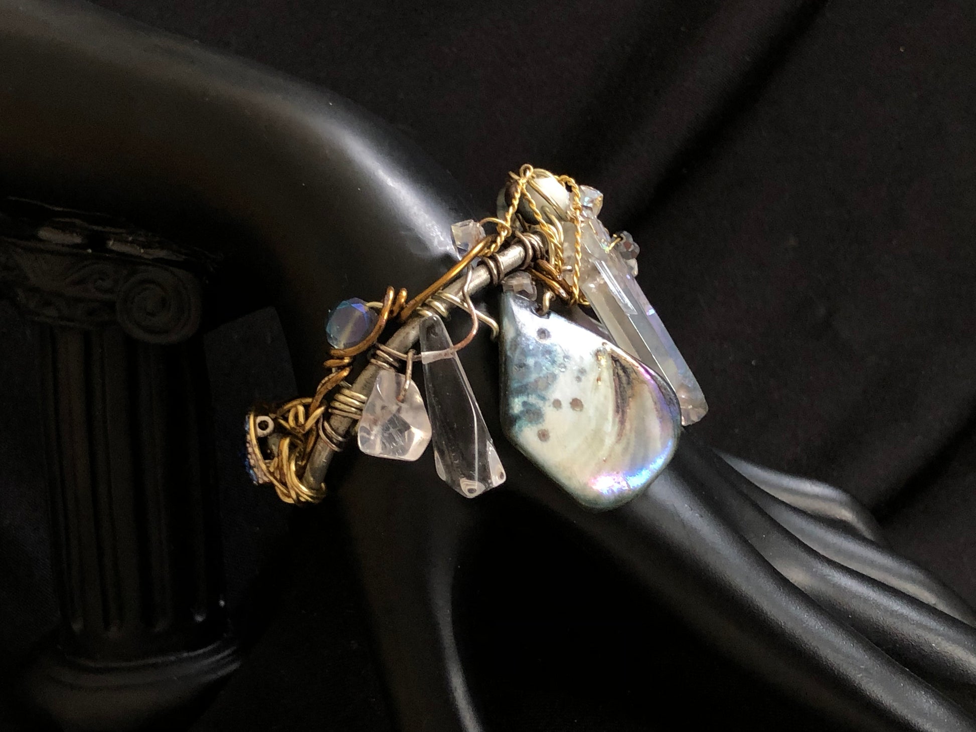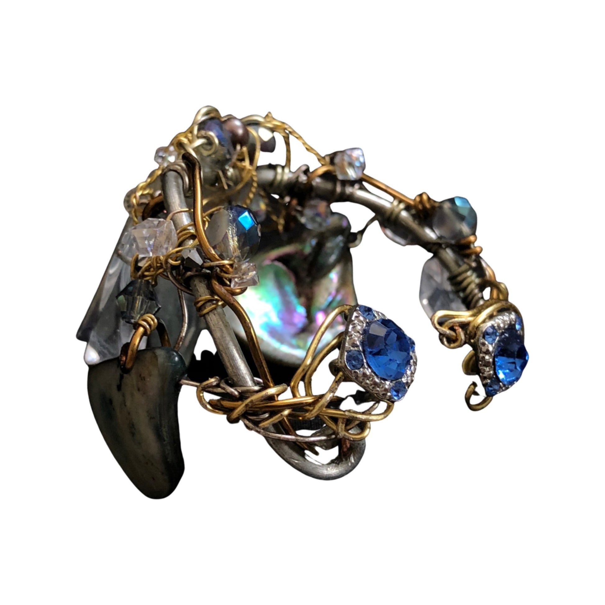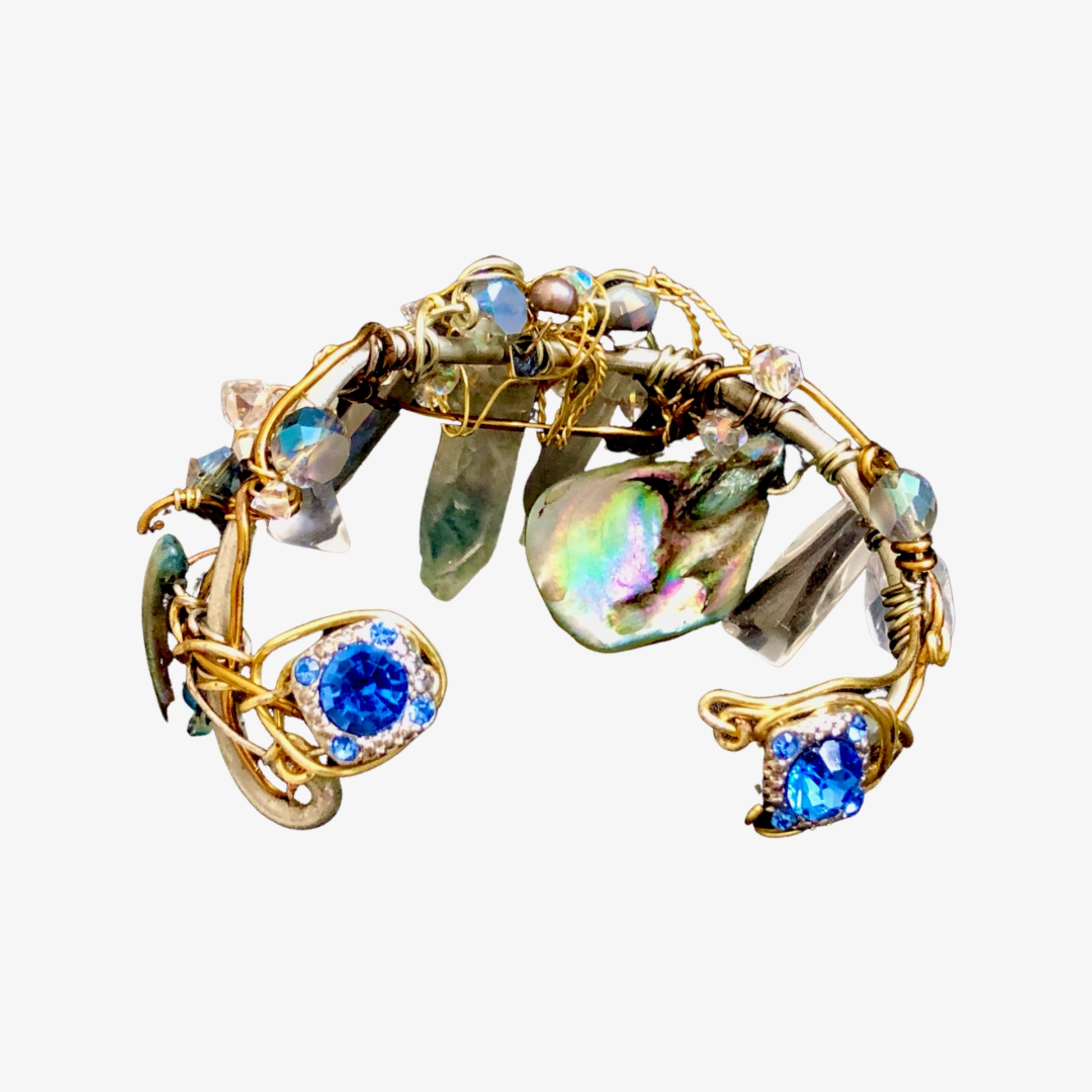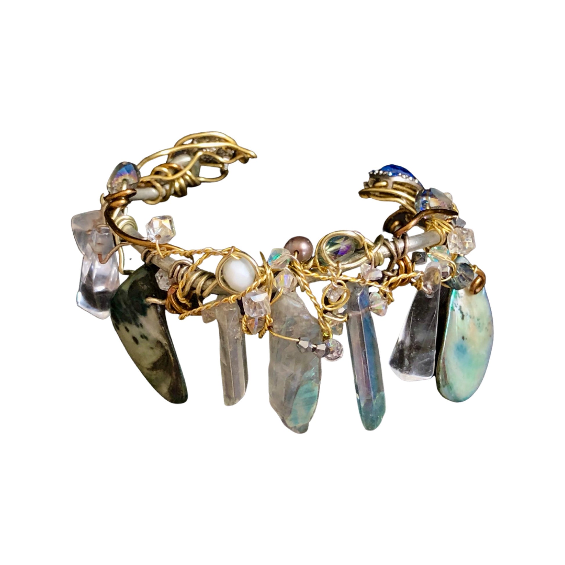 Introducing the Mystic Seas bracelet, a stunning piece of jewelry crafted with labradorite, abalone, and crystal beads. This bracelet is not only beautiful but also has several healing properties. Labradorite is the birthstone for those born in February and is associated with the zodiac sign of Aquarius. It's believed to reduce anxiety and stress, promote intuition and spiritual awareness, and balance hormones. Abalone is known for its calming energy and is thought to enhance compassion, love, and peace. It's also believed to help with emotional issues and promote harmony within relationships. Crystal beads are often used for their healing properties, including enhancing clarity and focus, promoting positive energy, and aiding in spiritual growth and development.