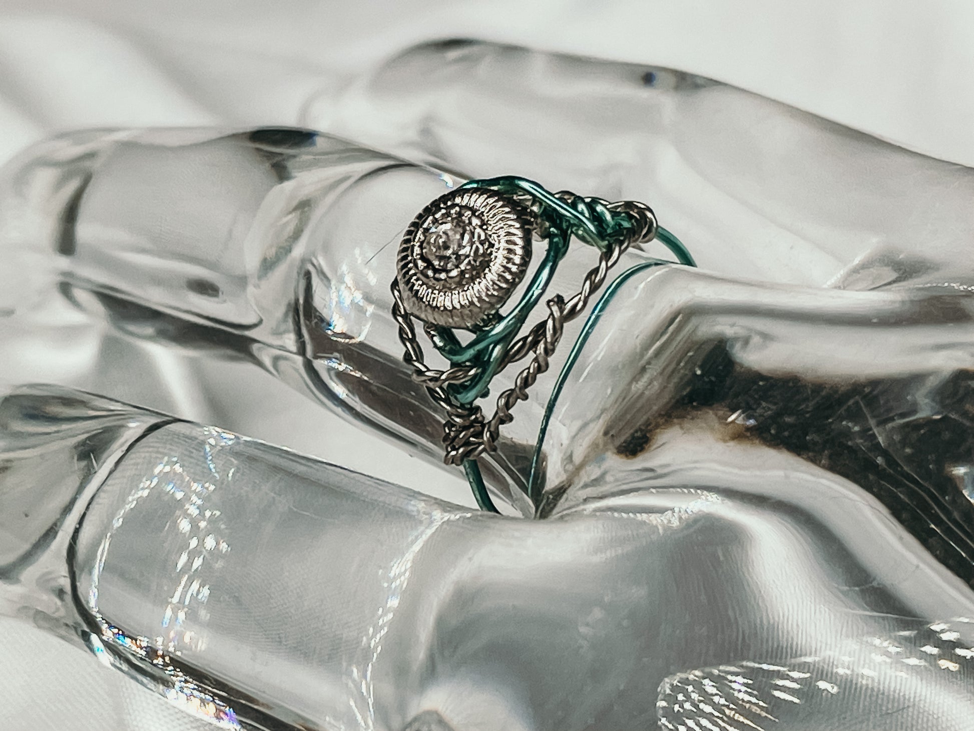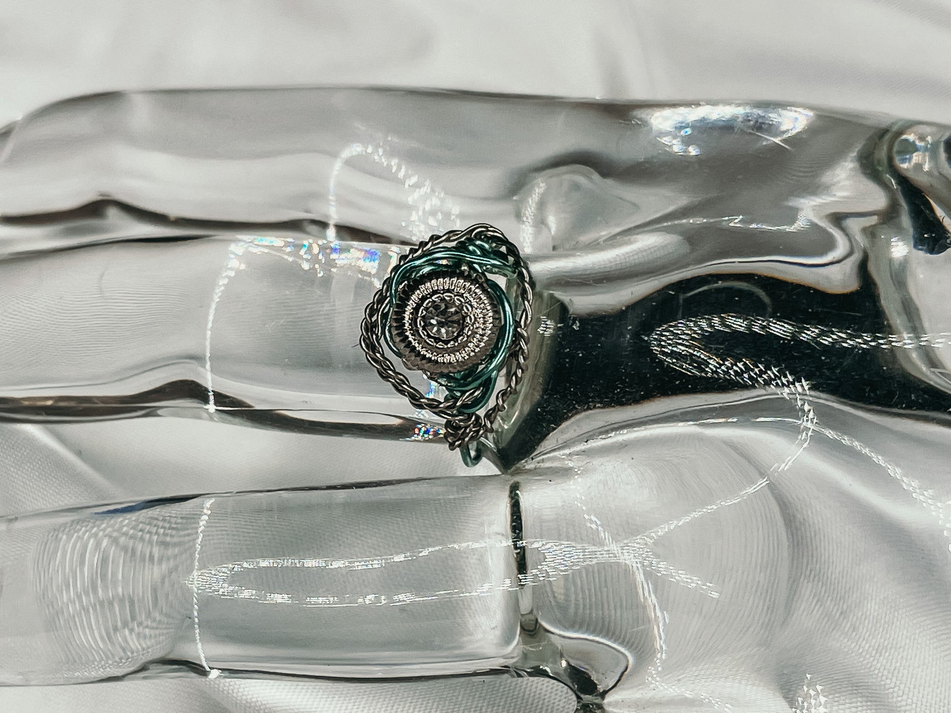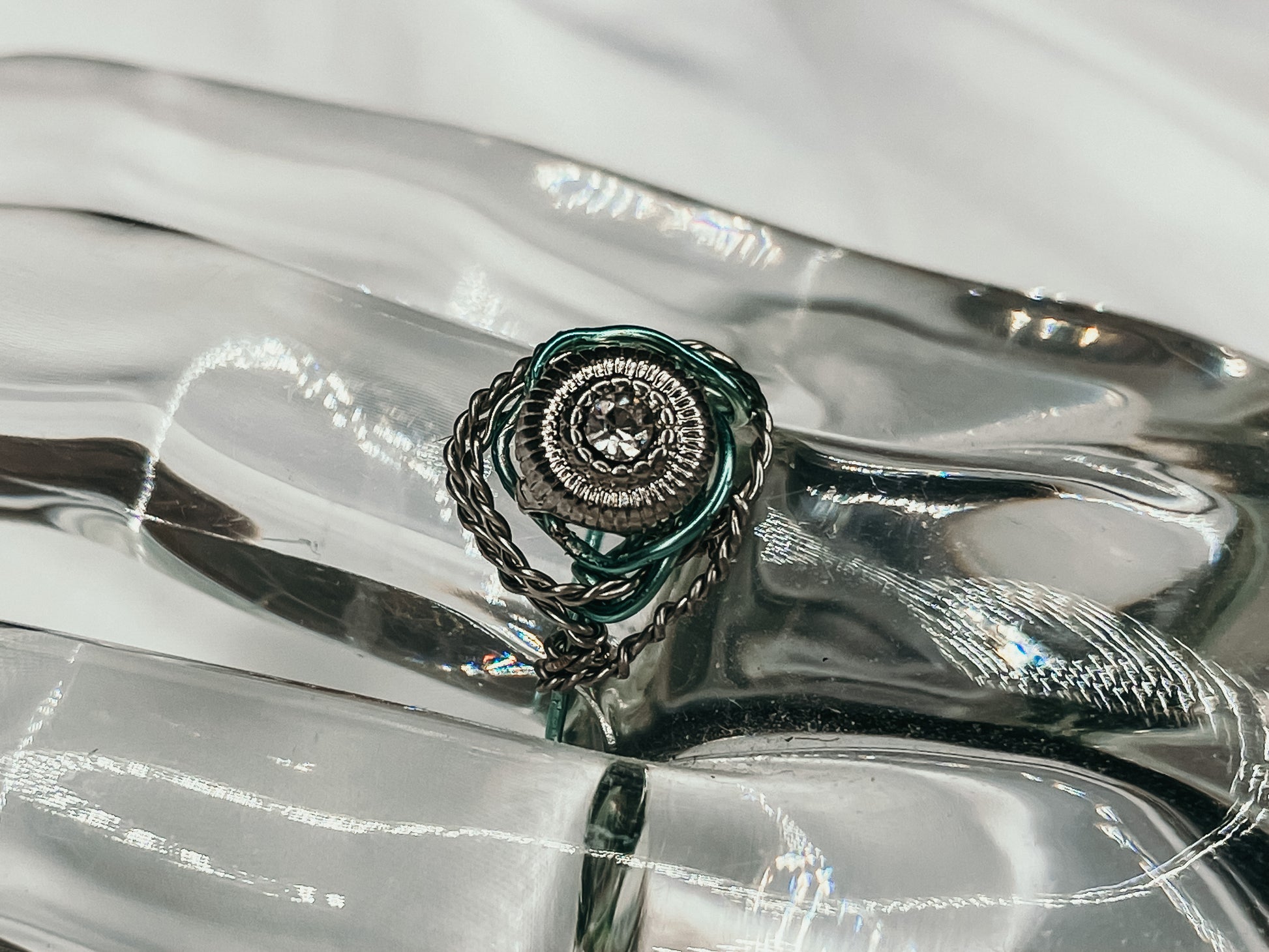 Crafted with hypoallergenic materials, this ring ensures a comfortable and irritation-free wearing experience for all. The light teal wire adds a unique touch, showcasing a subtle pop of color that complements a variety of styles and occasions.