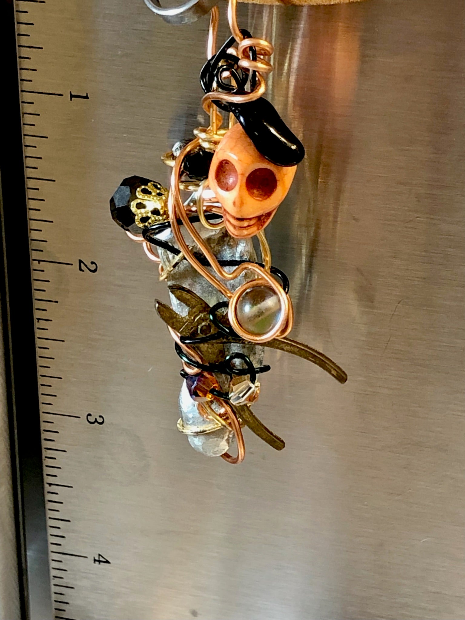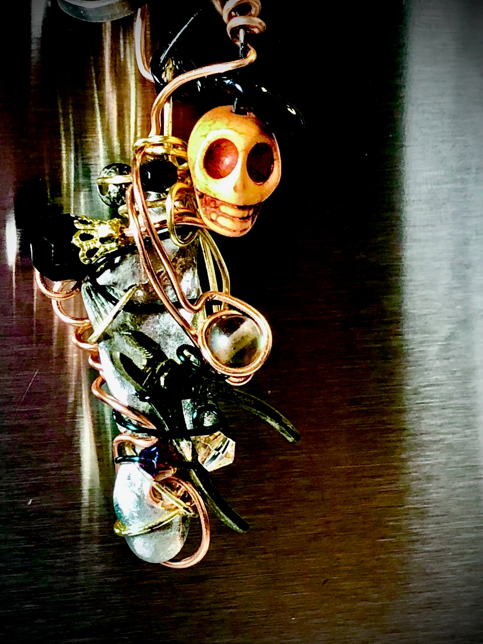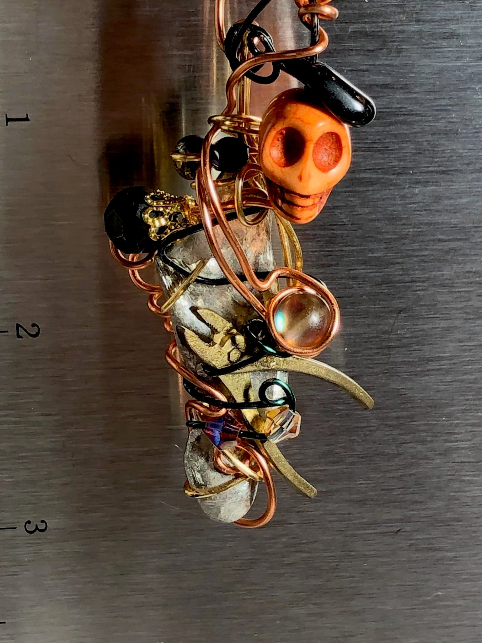 Turquoise, black onyx, Rainbow smoky quartz; arranged in creative attitude with preferred wrench tool sculpted and silver.