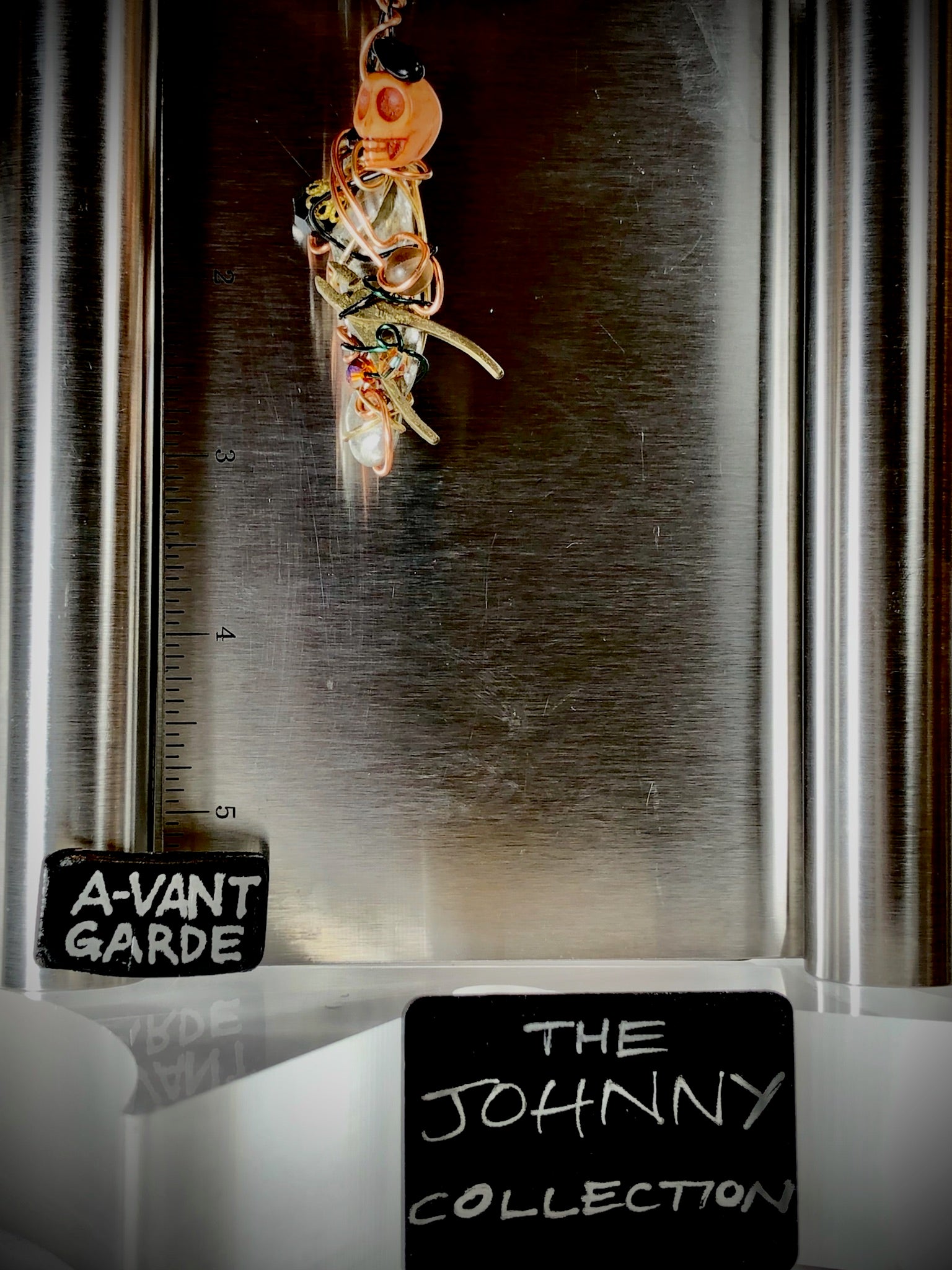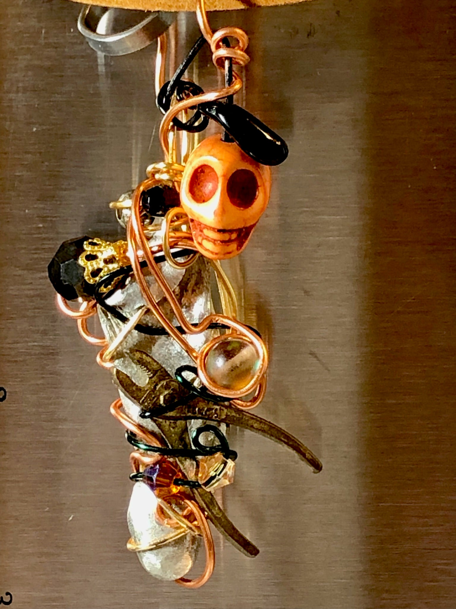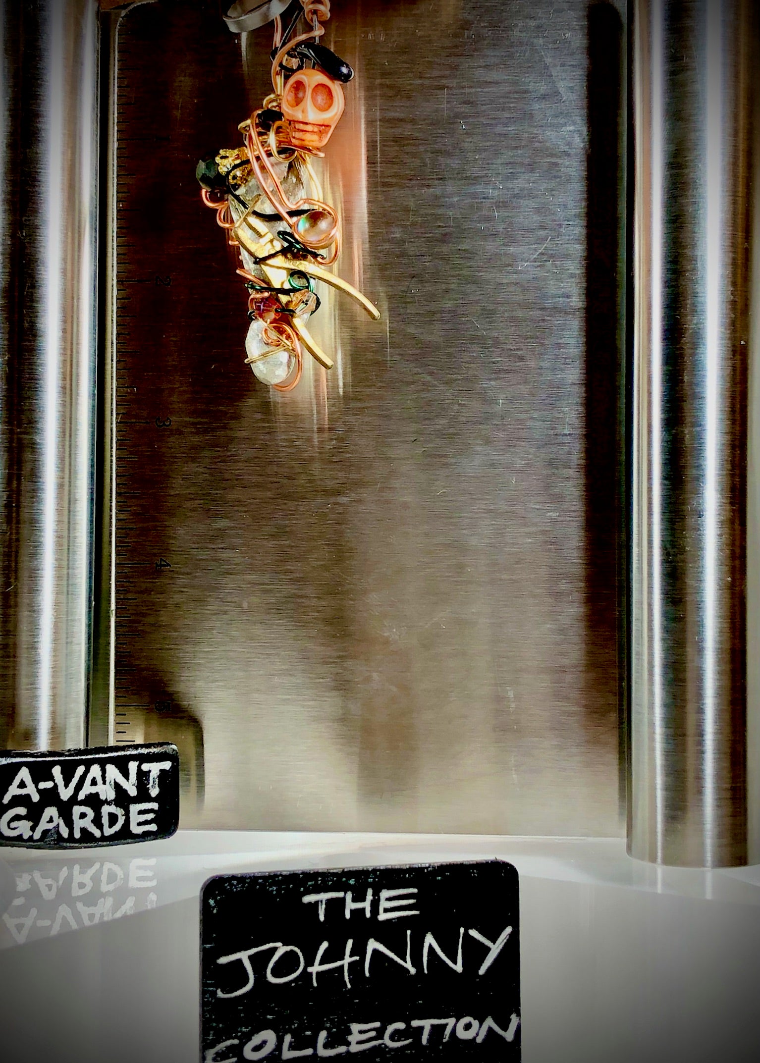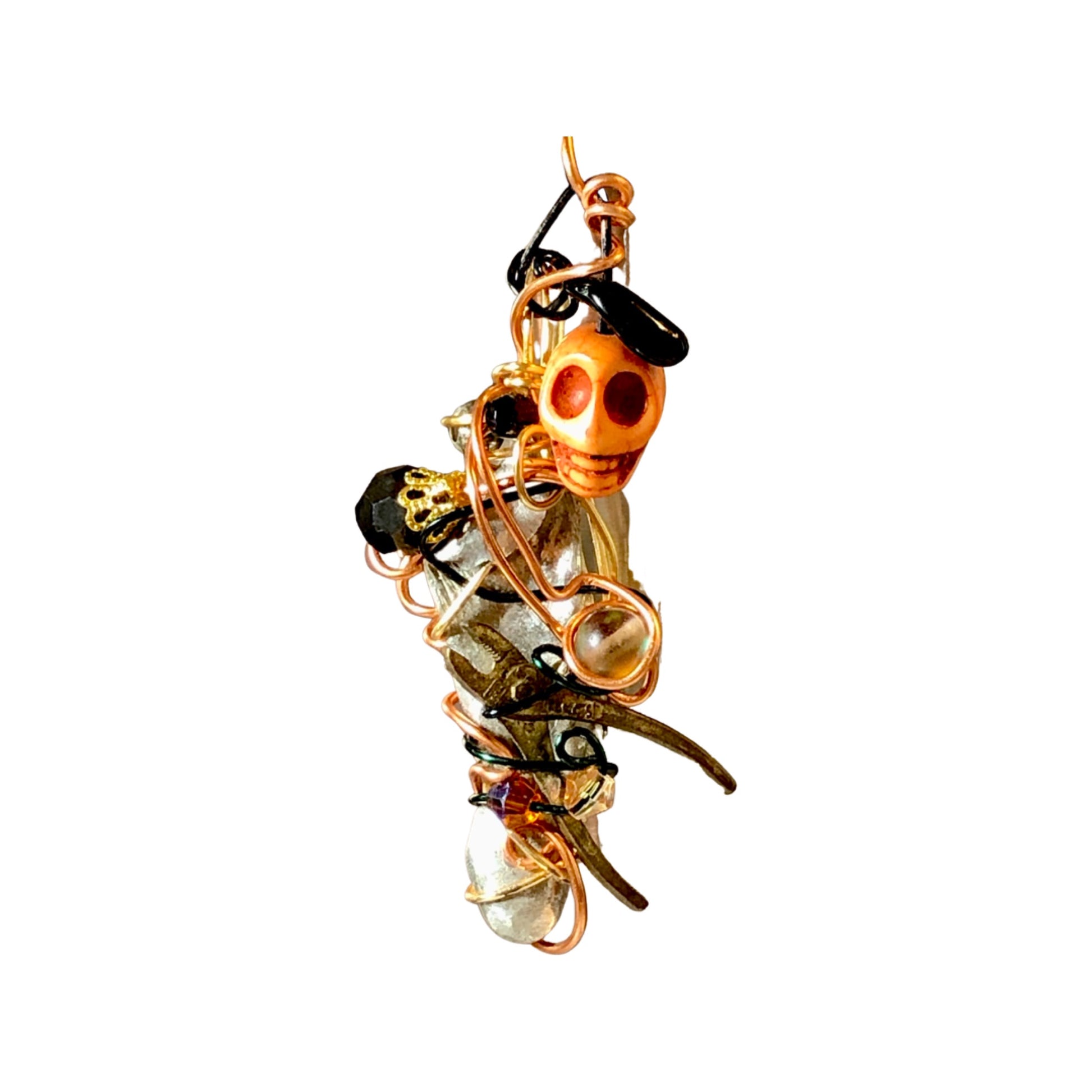 Turquoise, black onyx, Rainbow smoky quartz; arranged in creative attitude with preferred wrench tool sculpted and silver.
