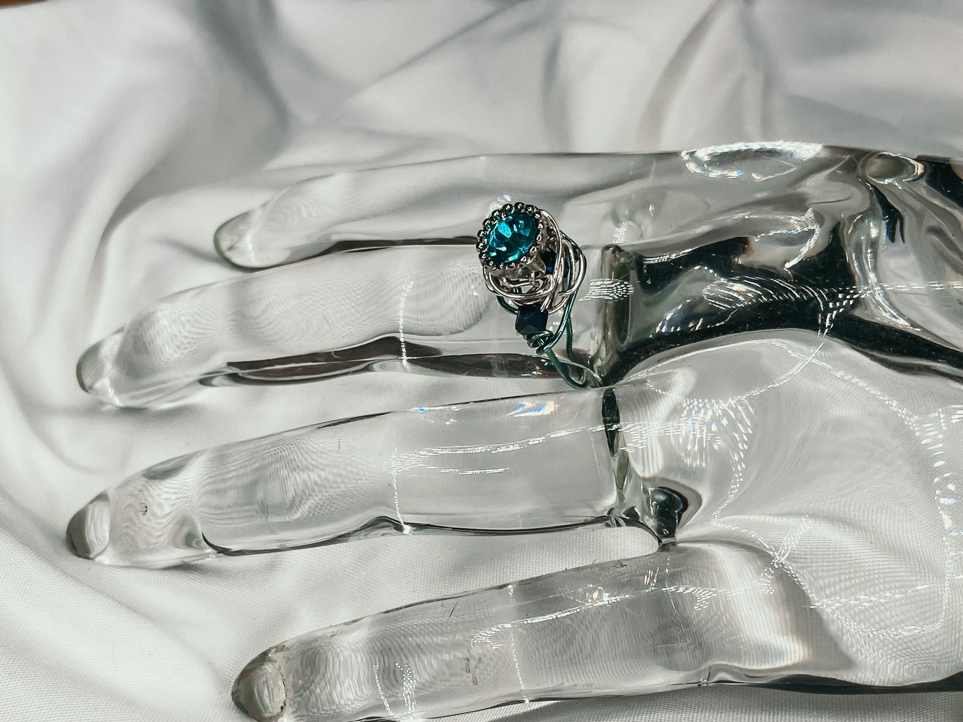 The mesmerizing blue topaz rhinestone, reminiscent of the deep blue sea, symbolizes serenity, clarity, and calmness. It is believed to soothe the mind, enhance communication, and bring inner peace. The "Oceanic Elegance" ring acts as a conduit for positive energies, allowing you to embrace a sense of balance and find solace in the midst of life's challenges.