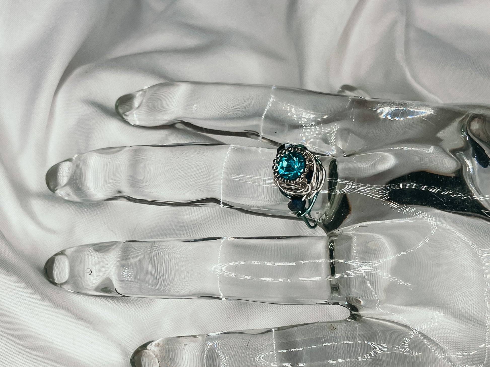 Introducing the magnificent "Oceanic Elegance" ring, a stunning piece that seamlessly combines the allure of an ocean blue topaz rhinestone with the elegance of a silver wire band. This exquisite ring is not only a visual delight but also carries powerful properties that promote emotional healing and tranquility.