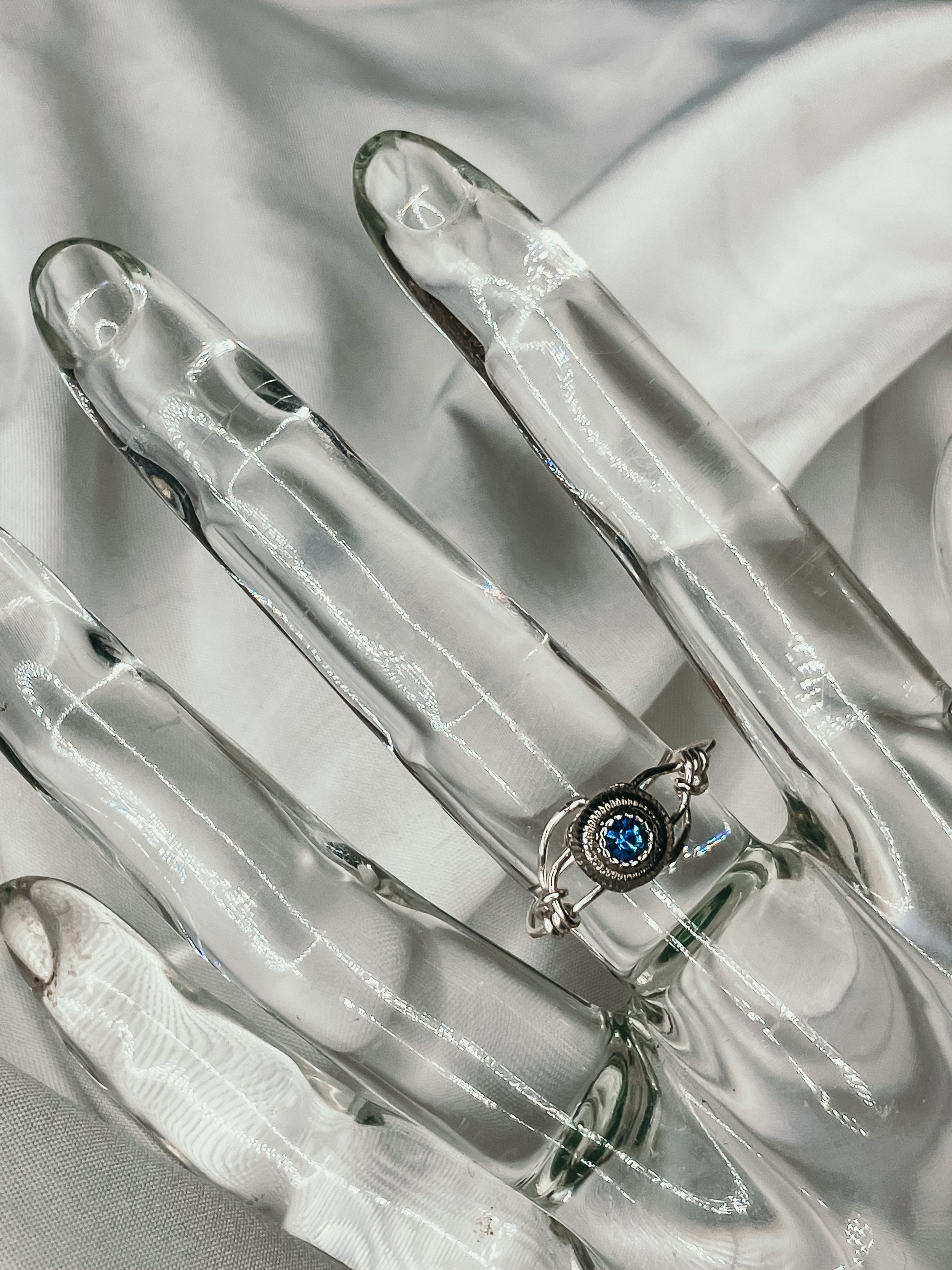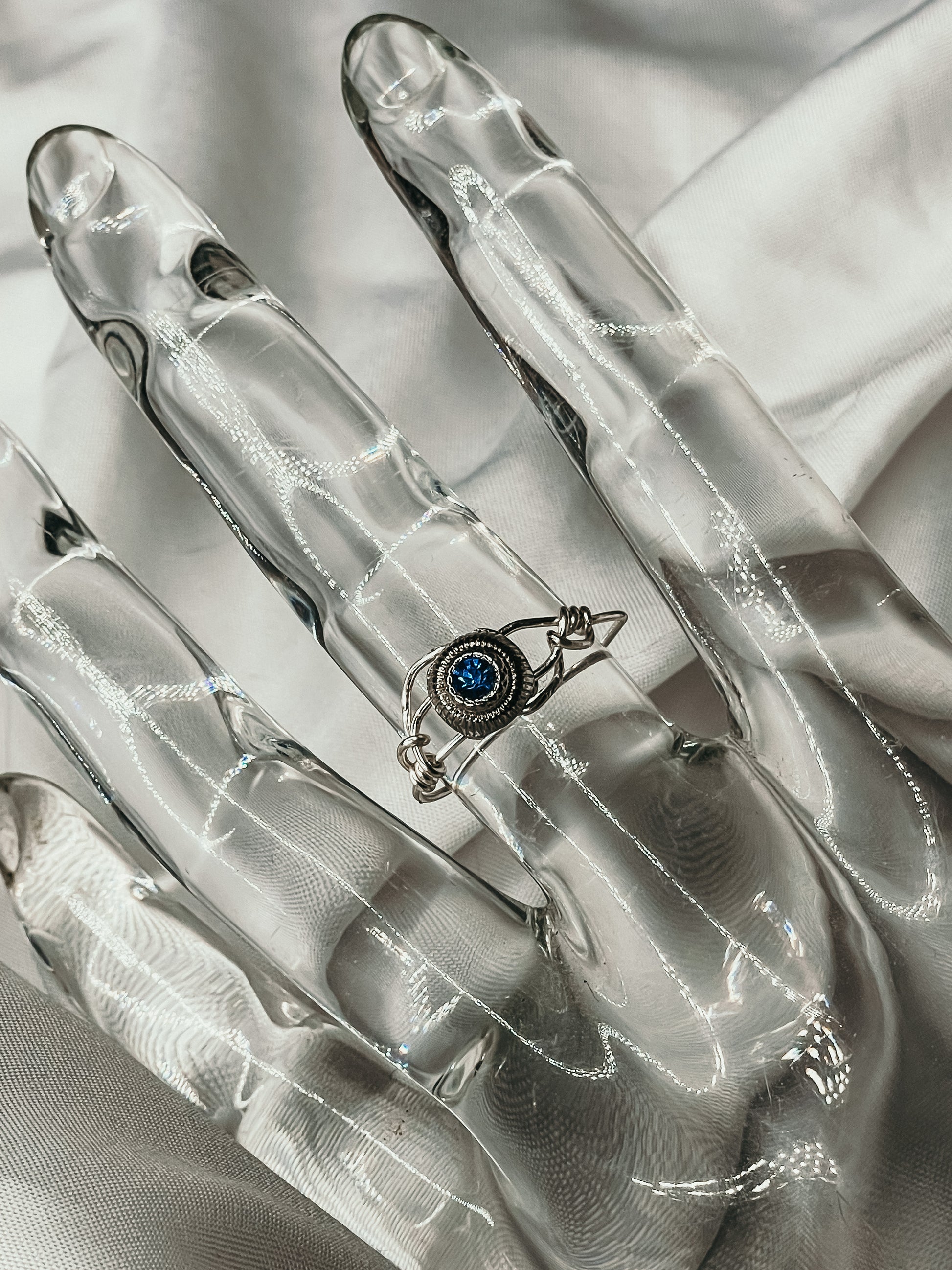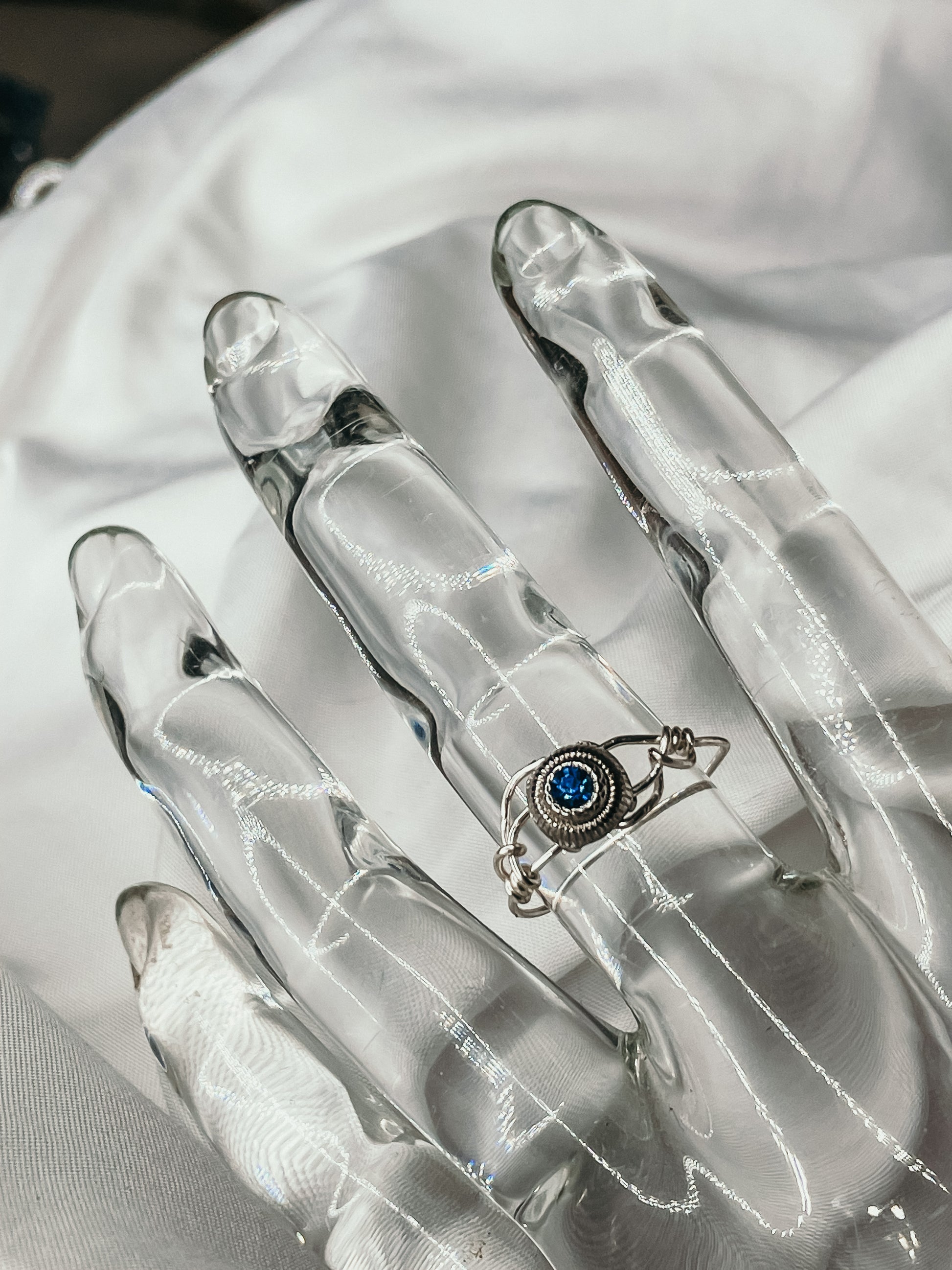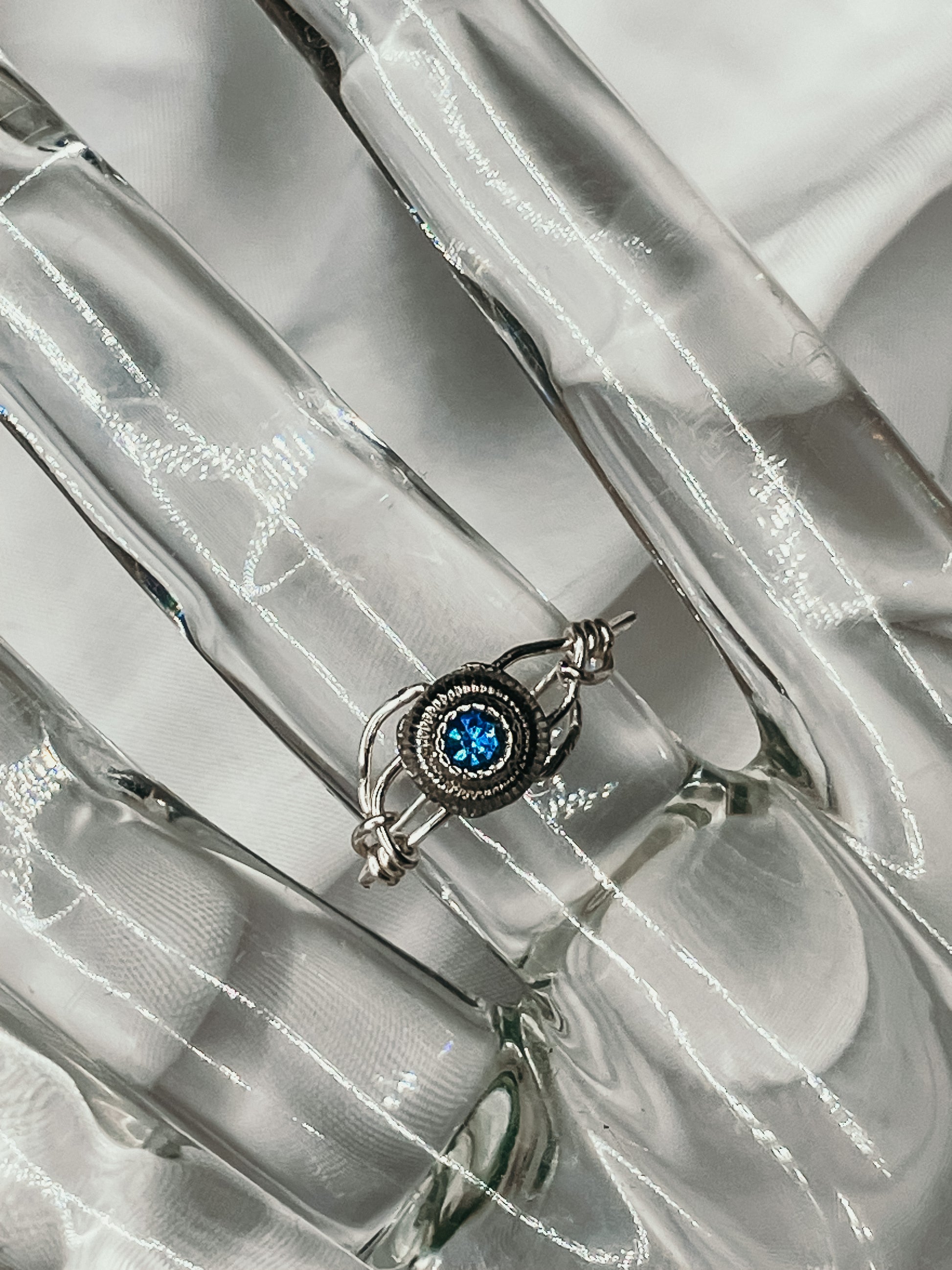 Crafted with hypoallergenic materials, this ring ensures a comfortable and irritation-free wearing experience for all. The delicate silver wire intricately weaves around the blue topaz rhinestone, enhancing its celestial beauty. Whether worn as a statement piece or a daily accessory, the "Celestial Serenity" ring radiates elegance and charm.