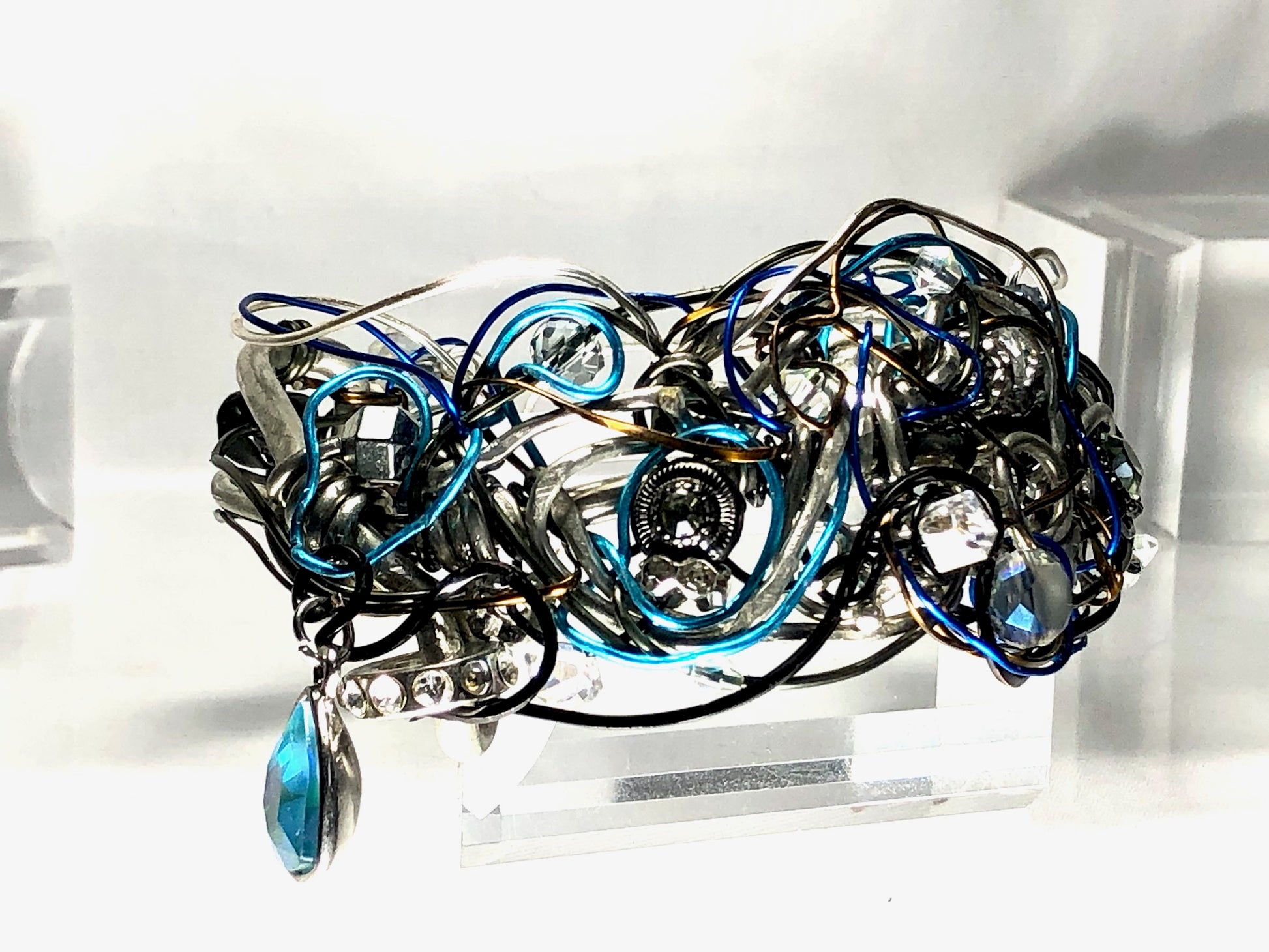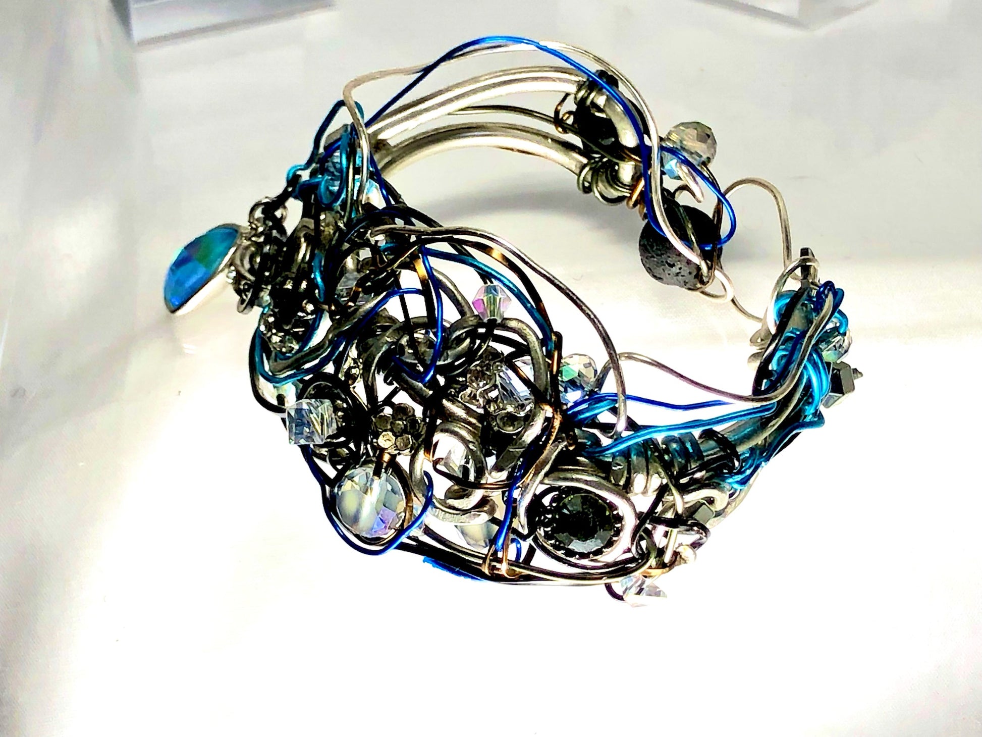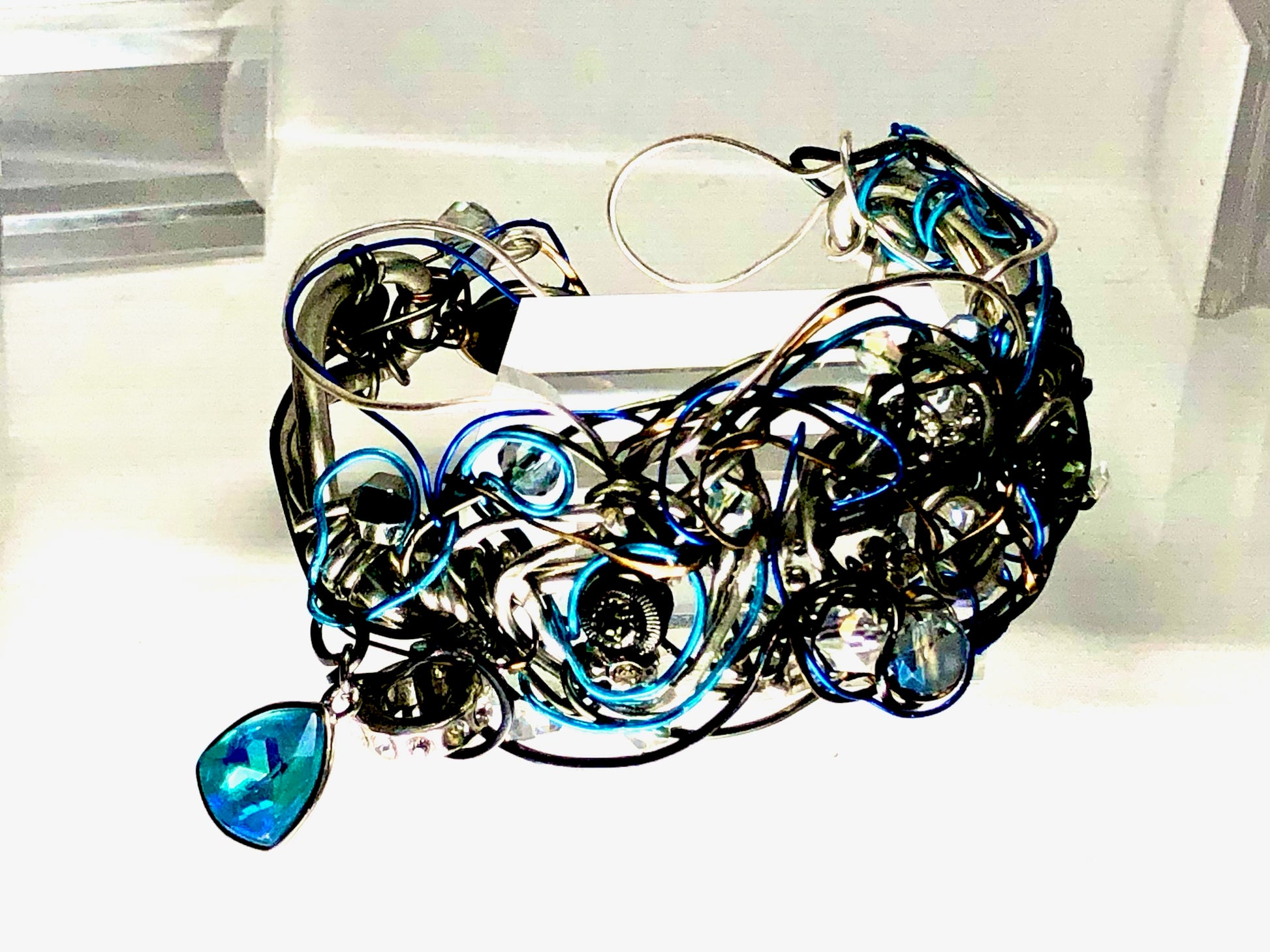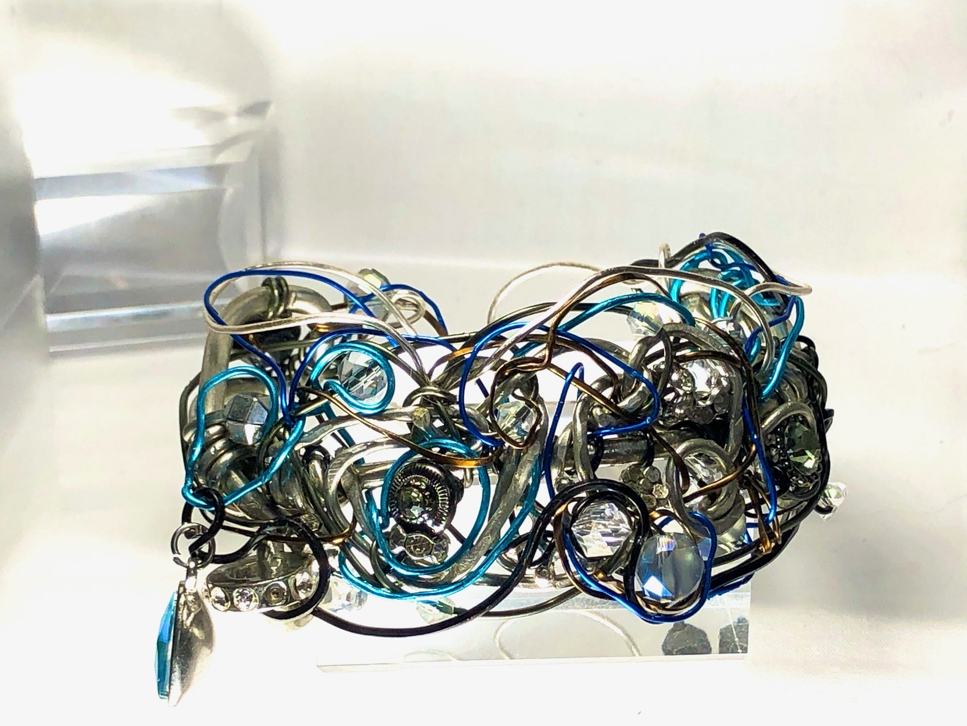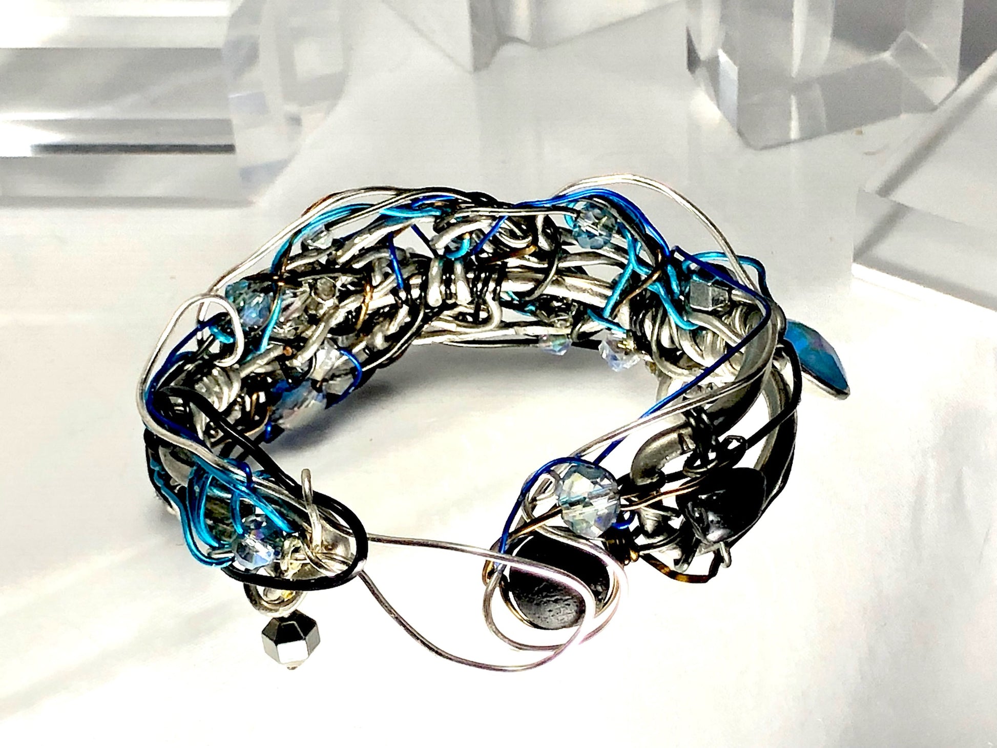 The wirework on this bracelet is truly a work of art. The intricate weaving and looping of the wire creates a beautiful texture and adds depth and dimension to the piece. The bracelet is finished with a secure clasp that ensures it will stay in place, no matter where the day takes you.