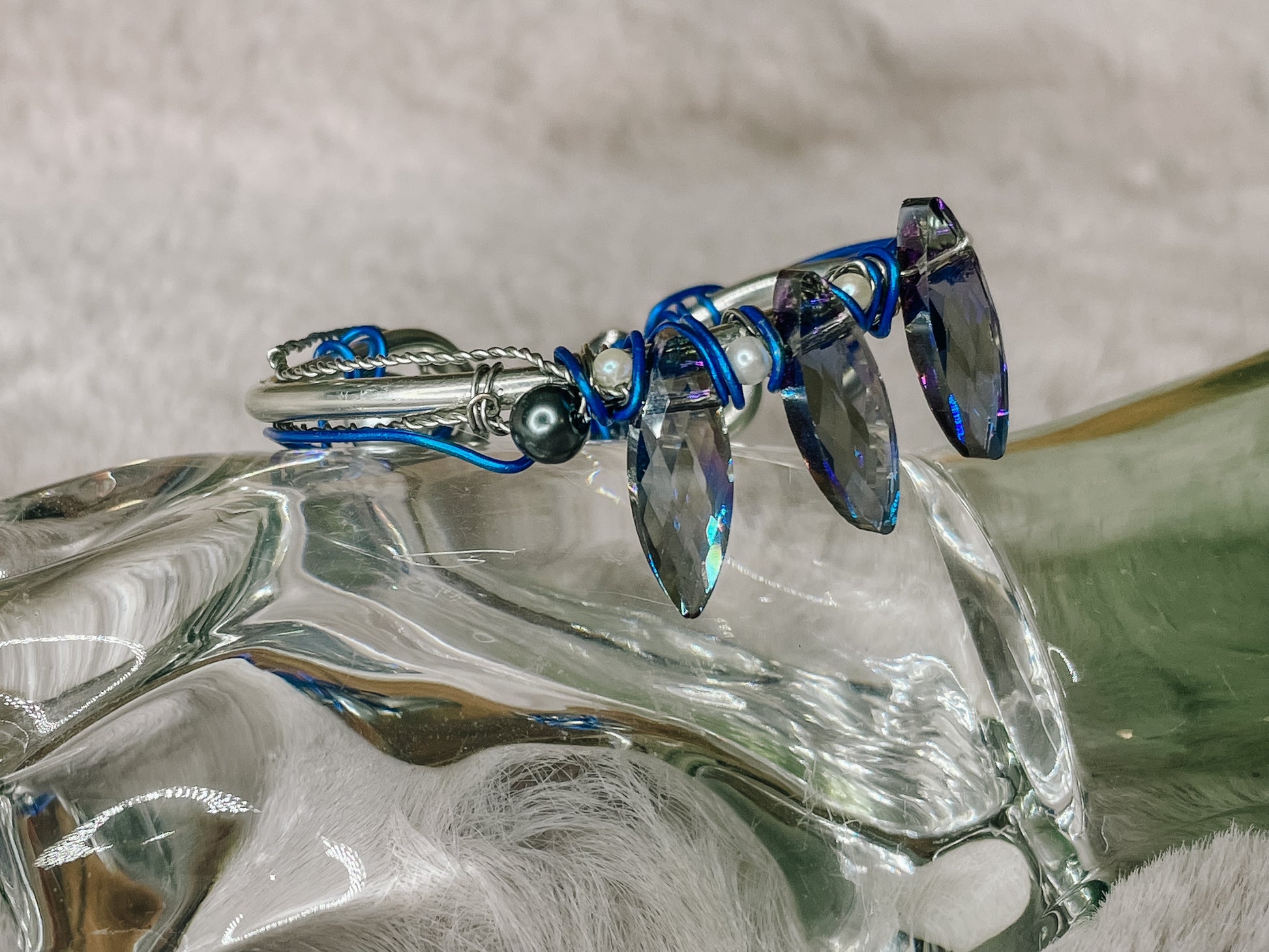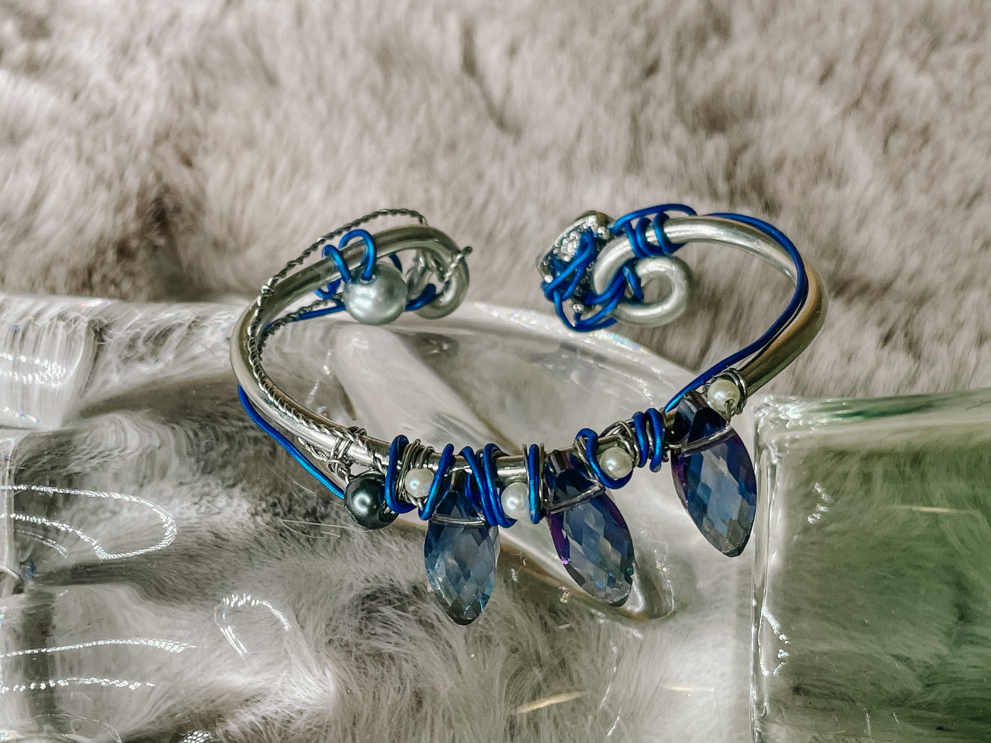 Introducing "Cinderella," our exquisite handcrafted blue Swarovski Crystal bracelet. This stunning piece is meticulously designed to showcase the mesmerizing beauty of the blue Swarovski Crystal, making it a perfect accessory for those seeking a touch of elegance and glamour.