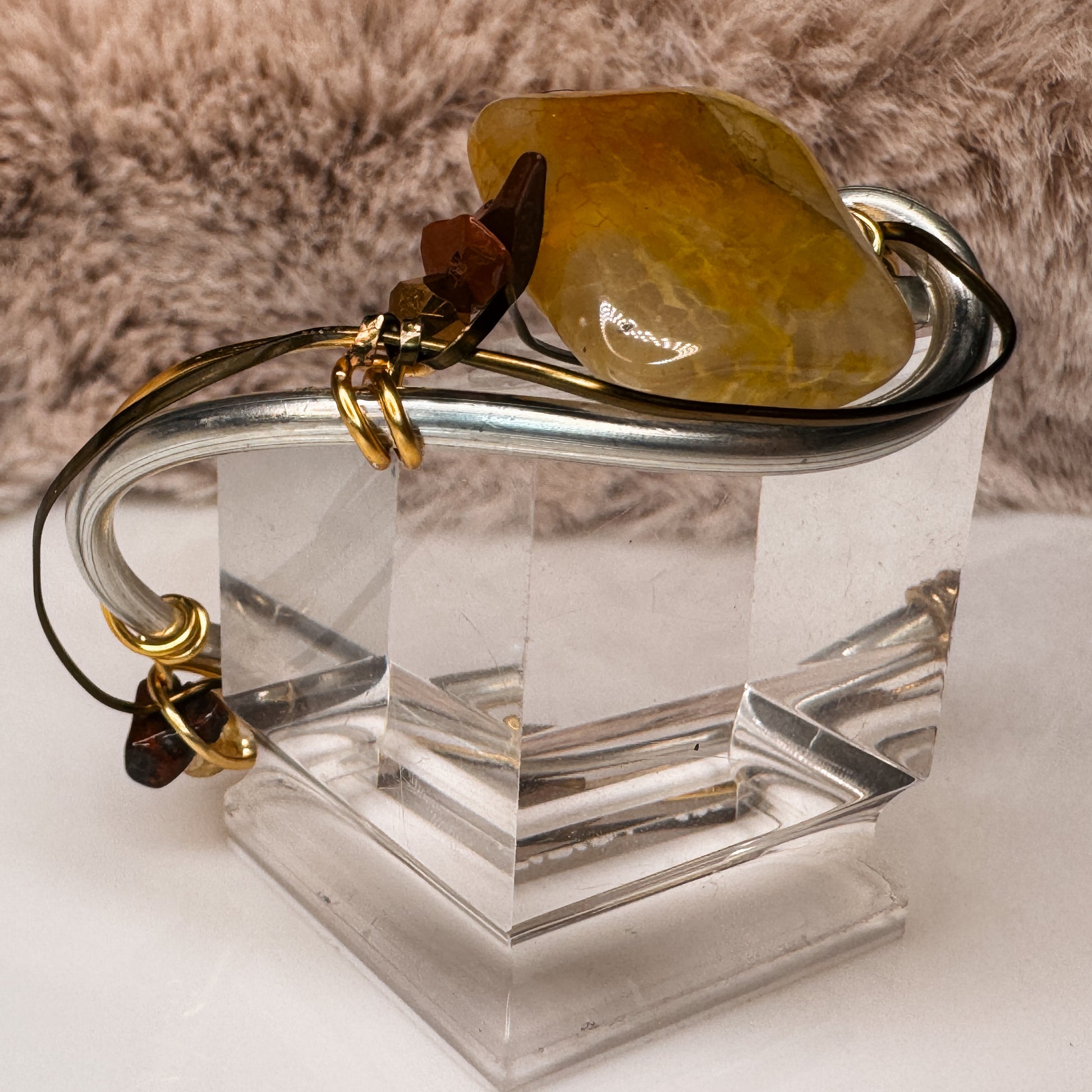 On the back, the bracelet features citrine and red jasper, adding to its allure. Citrine, helps with mental clarity, attracts abundance and prosperity while fostering joy and optimism. Red jasper, a stone of endurance and vitality, provides grounding energy and enhances determination, empowering you to achieve your goals.