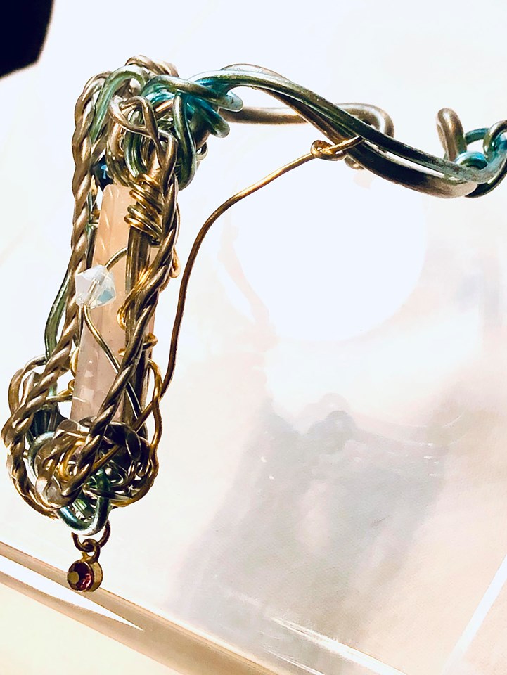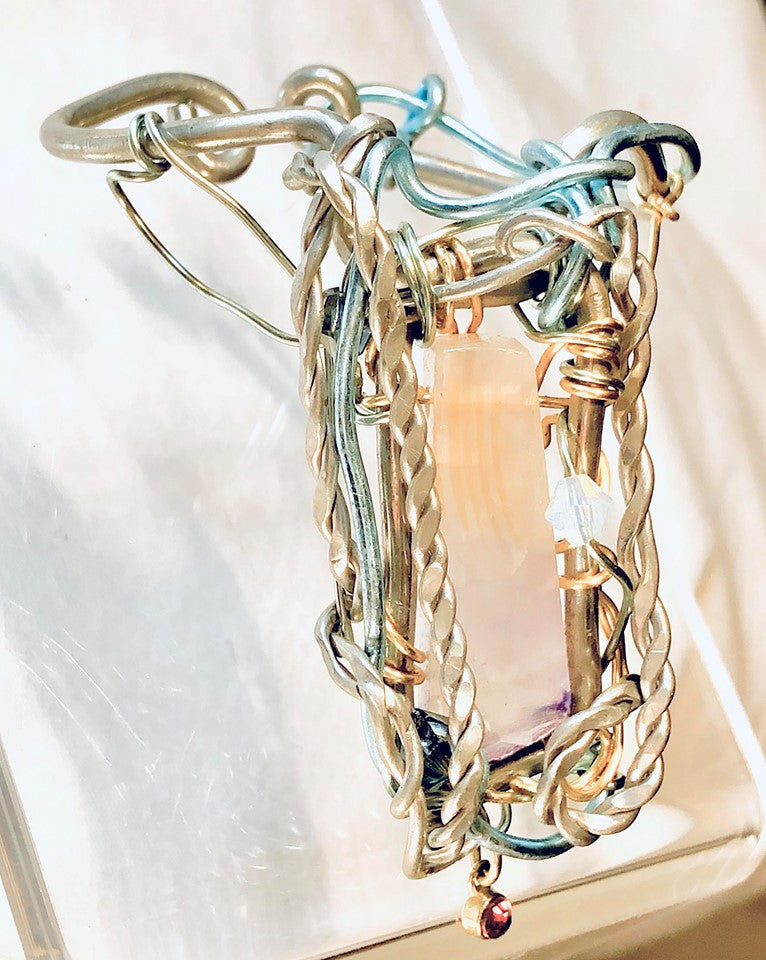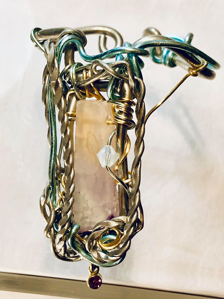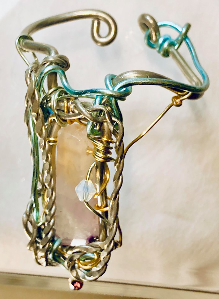 Jewels of Middle earth Collection. Elfin Queen. Braided silver entwine to display this exquisite stone beautiful in its rare blend of Jasper, Agate and Crystal. One simple moonstone bicone, strategically placed to metaphysically emanate the stone’s properties of comfort, balance, harmony and peace. Will not tarnish, does not contain lead, copper or nickel. Each item is a unique, hand-made creation, please allow for subtle differences that solidifies the distinctiveness of each piece.