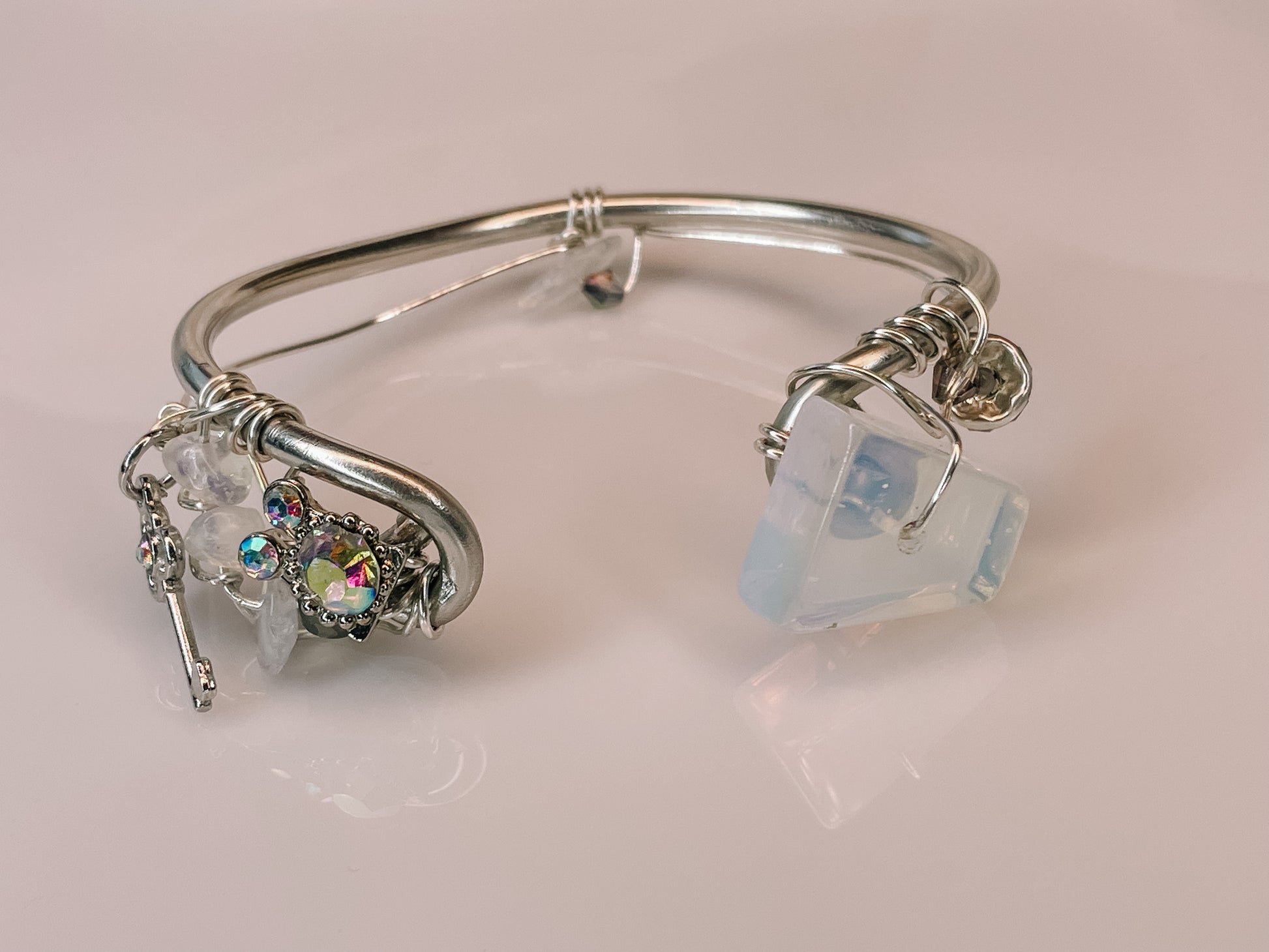 Once upon a time, in a far-off land, there was a bracelet that could bring happiness to anyone who wore it. The "Happily Ever After" bracelet was made of the purest artesian silver and adorned with the magical moonstone. Moonstone is known to promote inner growth and strength, making it perfect for those born under the zodiac sign of Cancer and as the birthstone for the month of June.