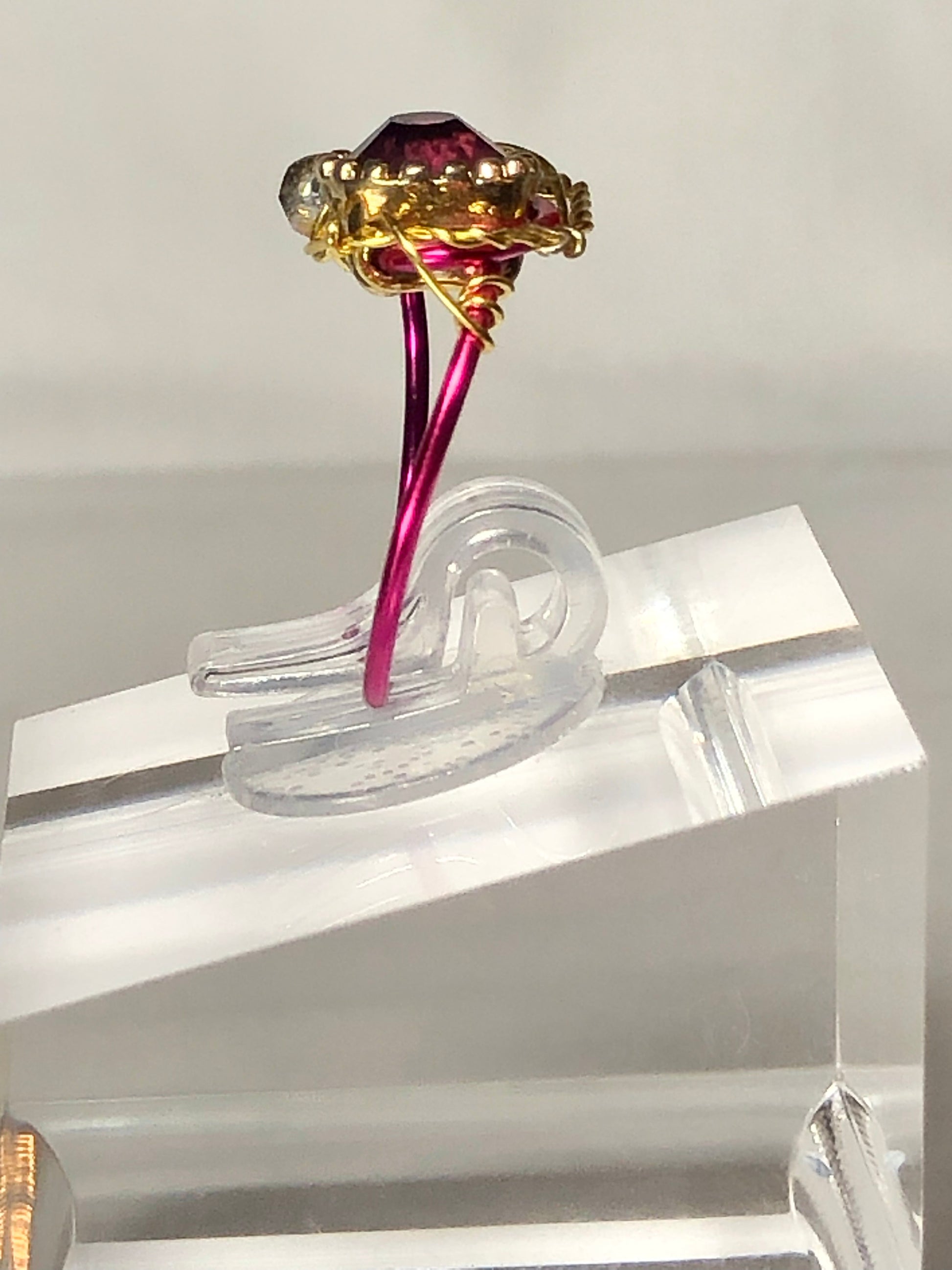 Hot pink rhinestone ring