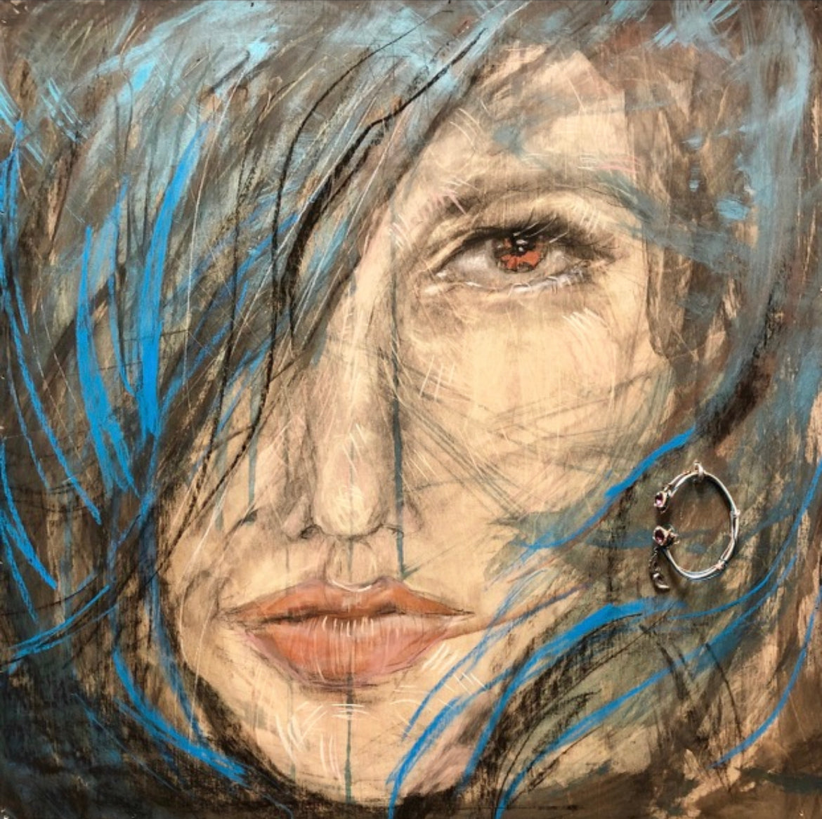 “Gypsy Babe” is a striking and thought-provoking artwork that embodies the essence of insight, self-awareness, and the power of truth. Crafted on a wooden canvas and enhanced with acrylic, chalk, charcoal, and metallic paint, this piece presents a vivid portrayal of a figure who is both enigmatic and deeply attuned to the world around her. The addition of a three-dimensional crystal earring elevates the work, adding a tangible element that resonates with the themes of perception and authenticity.
