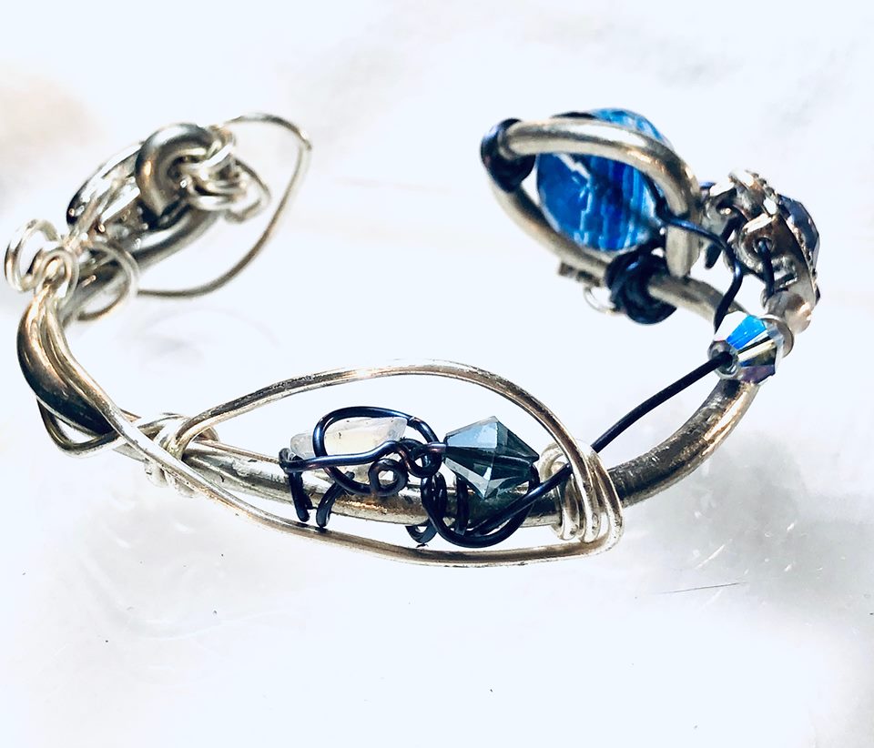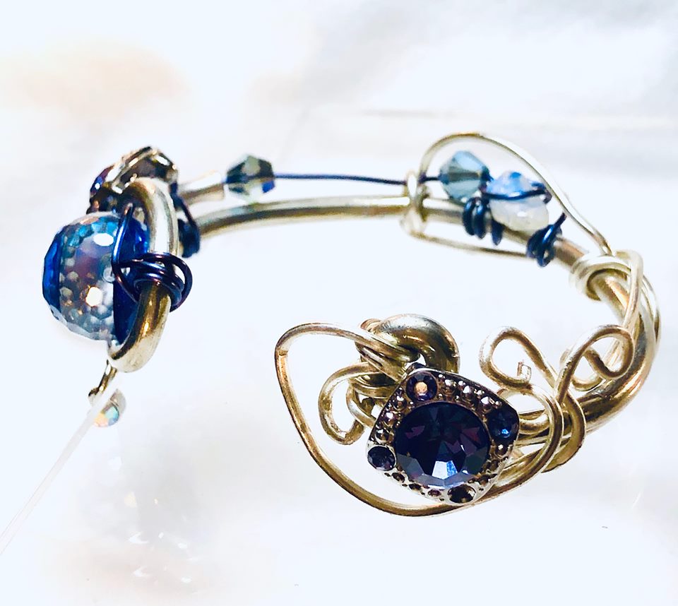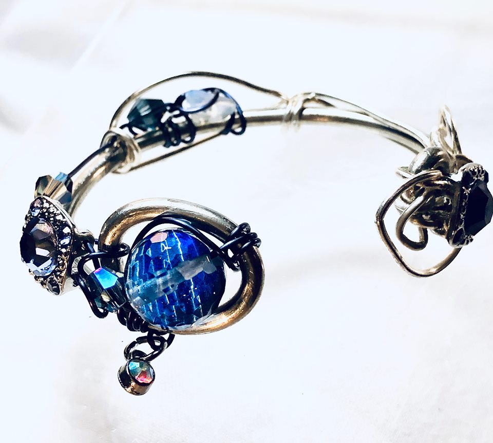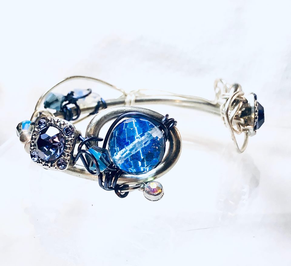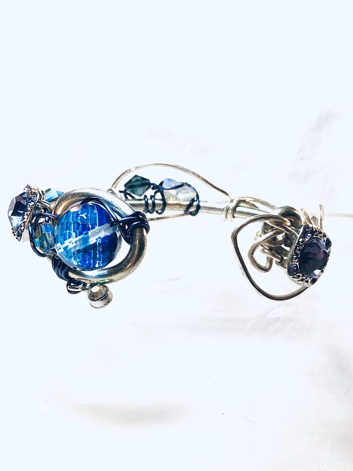 The Jewels of Middle Earth.  This stone of blue, is flecked with silver dust, caused by the eruption of a volcano and the systematic pressure shot silver inside this stone.  In the belief that this stone encases the energy of its birth, I have set a moonstone at the pulse of this creation. A conduit to promote acceleration of the properties of the stone. Will not tarnish, does not contain lead, copper or nickel.  Each item is a unique, hand-made creation, please allow for subtle differences that solidifies the distinctiveness of each piece.