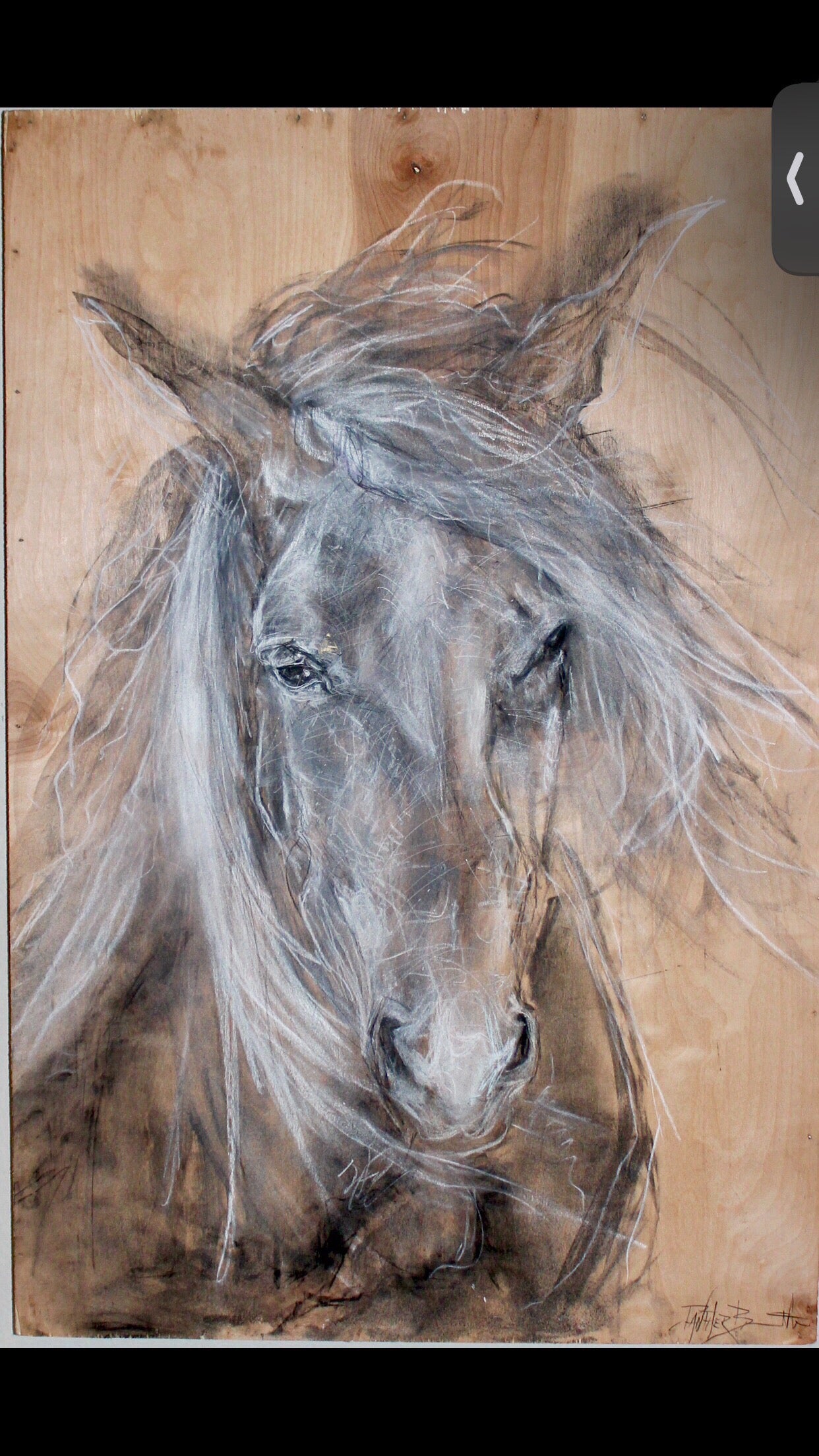 “Lucky" is a mesmerizing painting that captures the essence of hope and companionship through its innovative use of materials and poignant imagery. Created on a wooden canvas, this piece employs charcoal, pastel, and acrylic to evoke a rich texture that complements the natural wood grain, adding depth and warmth to the overall composition.