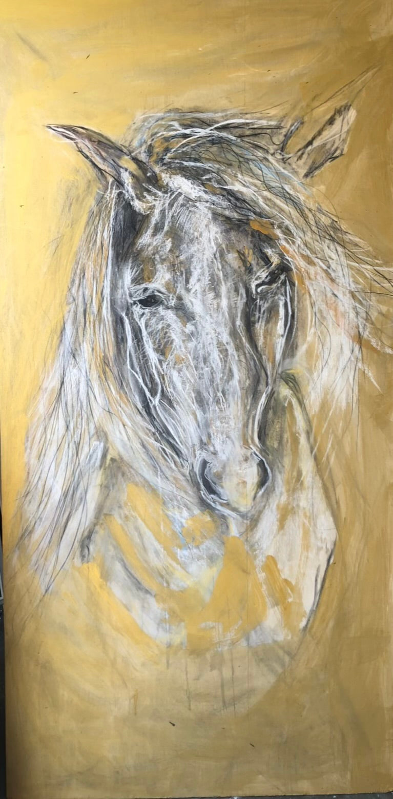 This dynamic portrayal, of a majestic horse,with its mane flowing gracefully in the breeze, imbues the artwork with a sense of freedom and vitality, suggesting a spirit unbound by the constraints of the mundane.