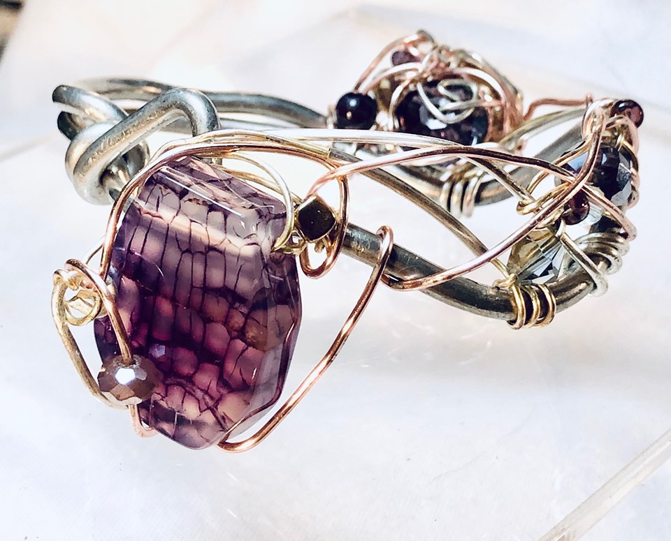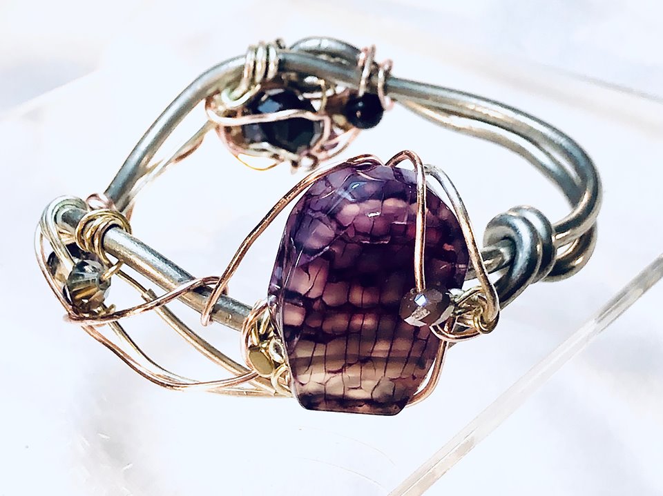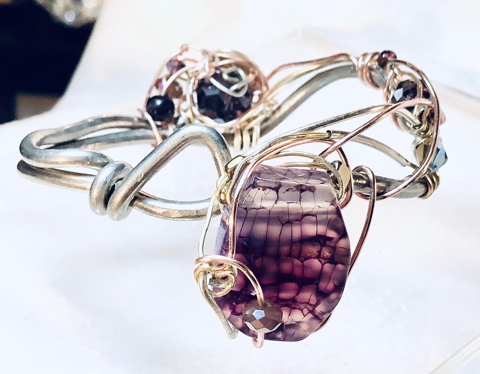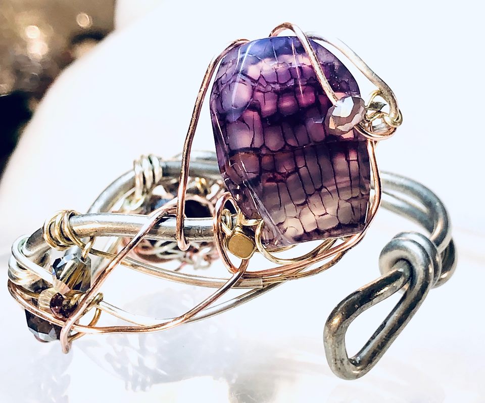 Feel the power of Malificent's Dragon with Purple Agate.  Will not tarnish, does not contain lead, copper or nickel.  Each item is a unique, hand-made creation, please allow for subtle differences that solidifies the distinctiveness of each piece.