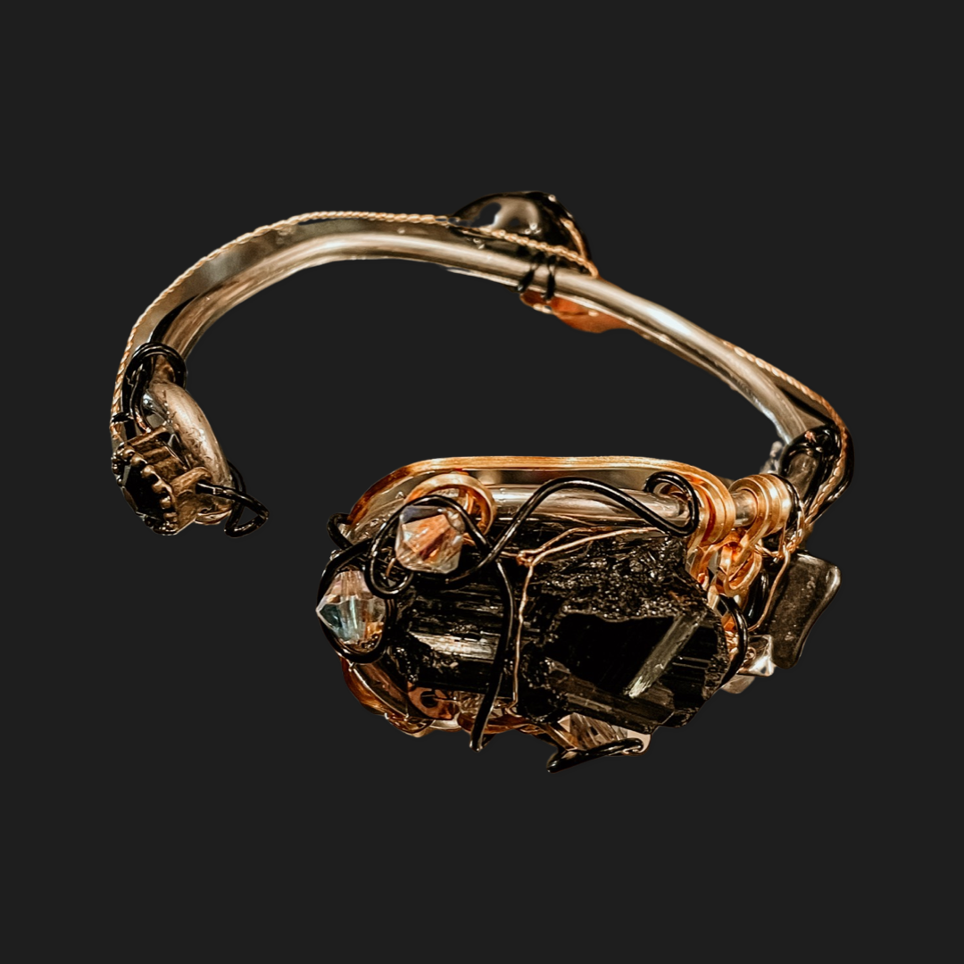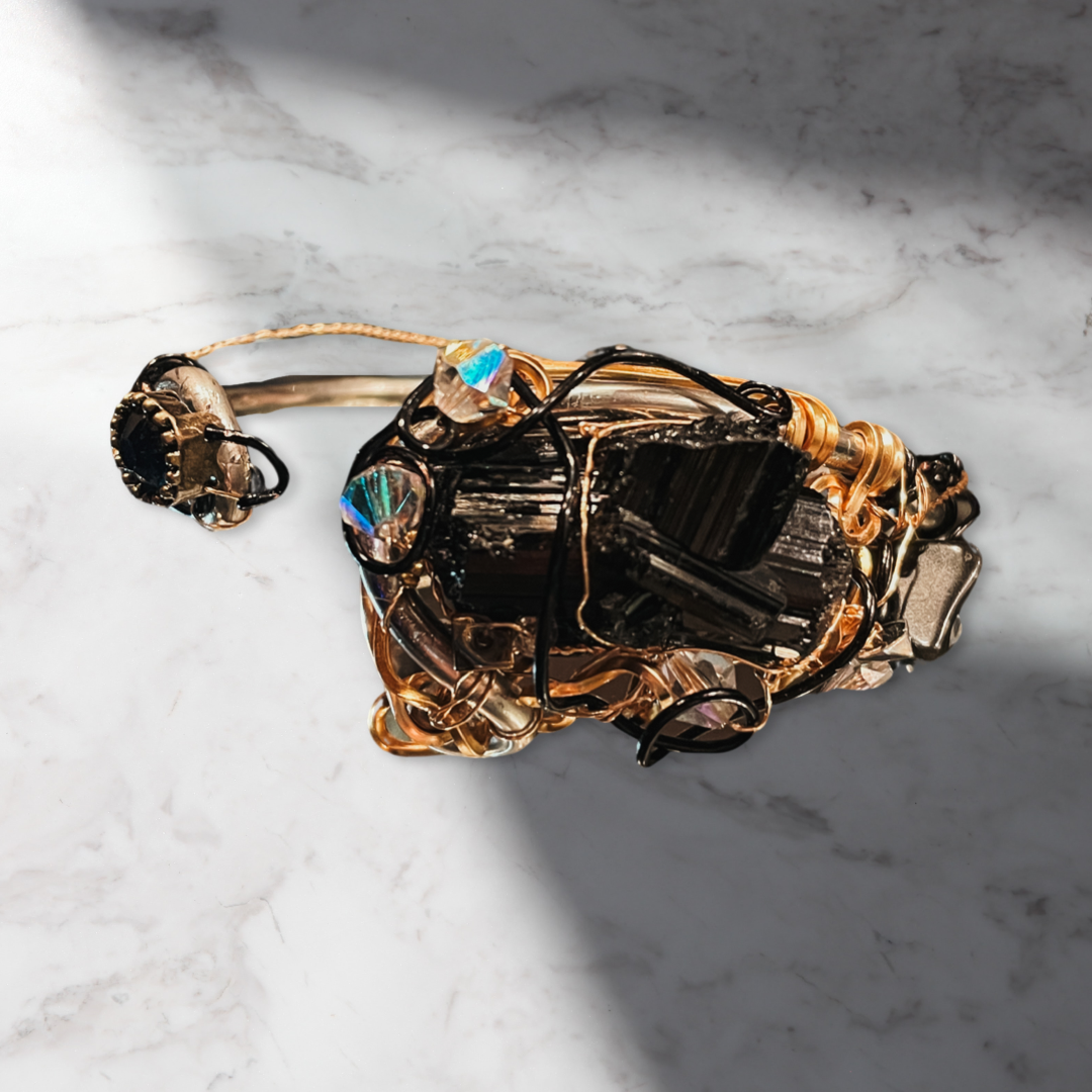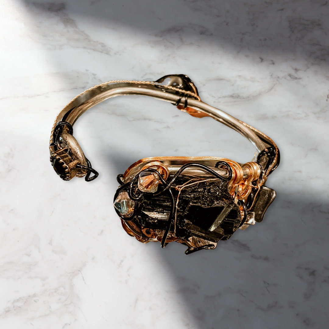 Presenting the captivating "Midnight Guardian Bracelet" - a stunning creation that harnesses the protective energy of black tourmaline. This mesmerizing bracelet is carefully designed to infuse your aura with strength and shield you from negative energies, all while exuding an aura of mystique and elegance.