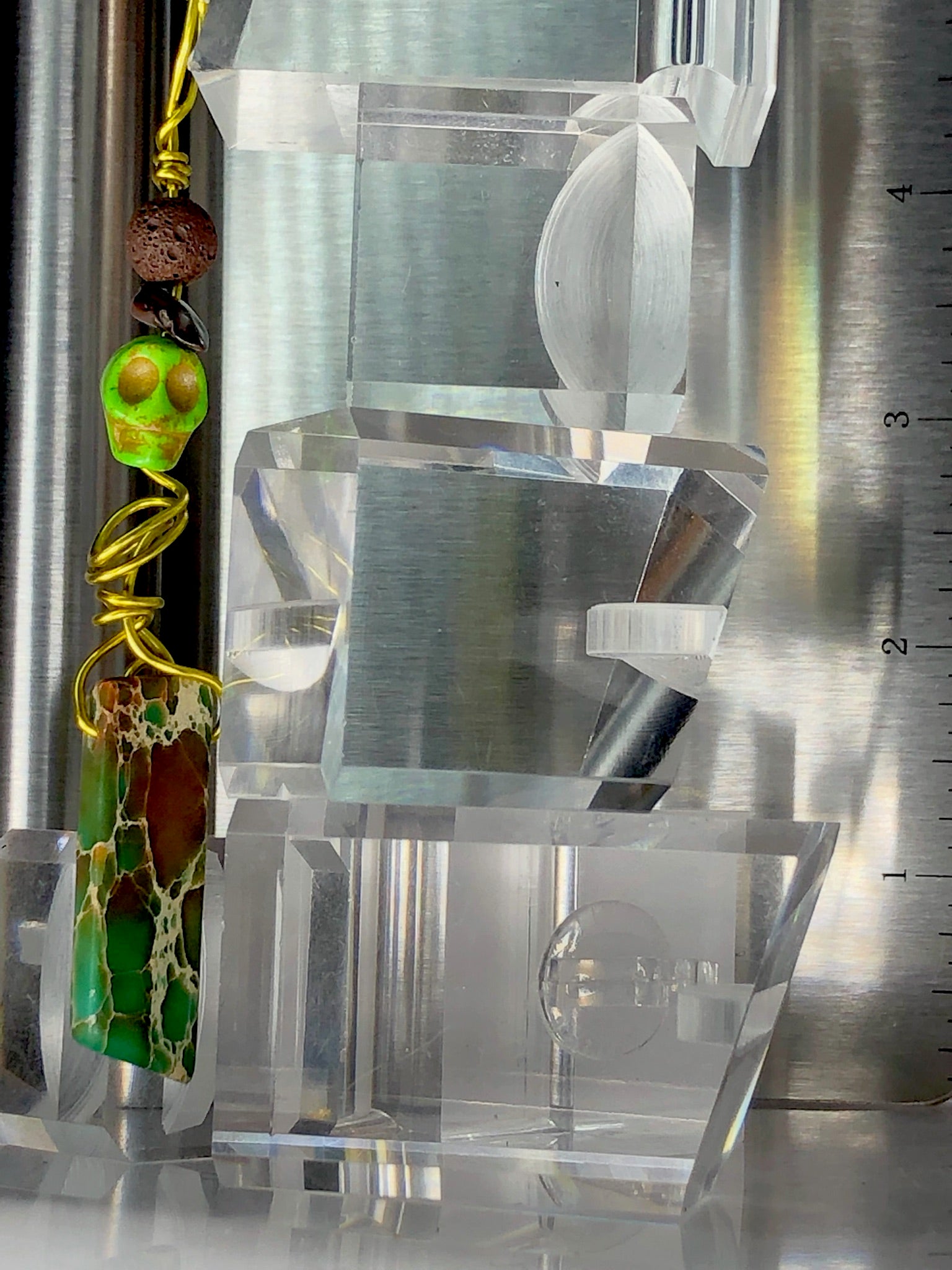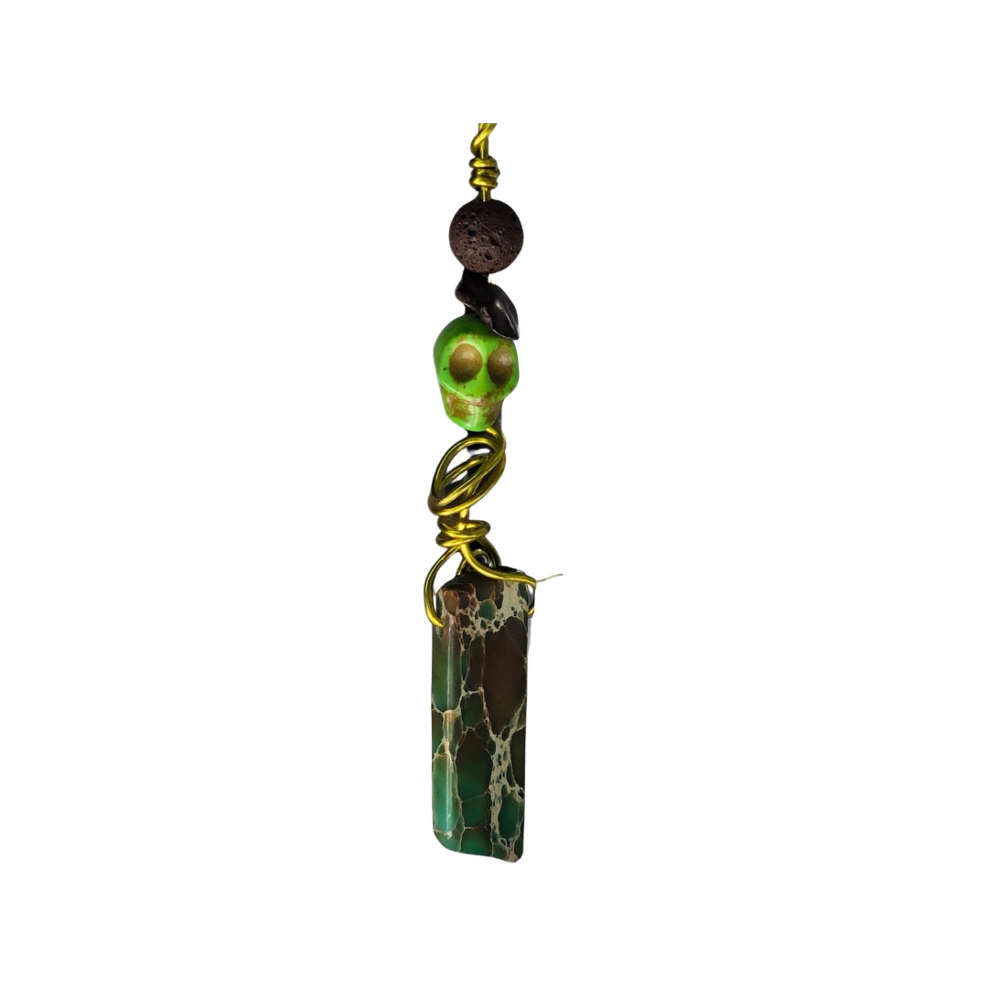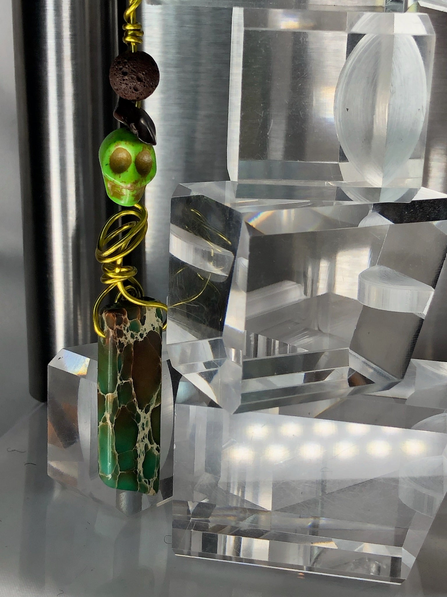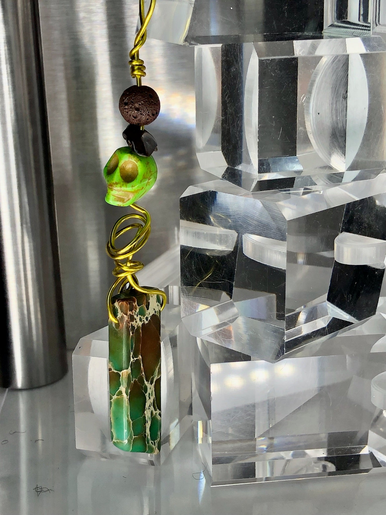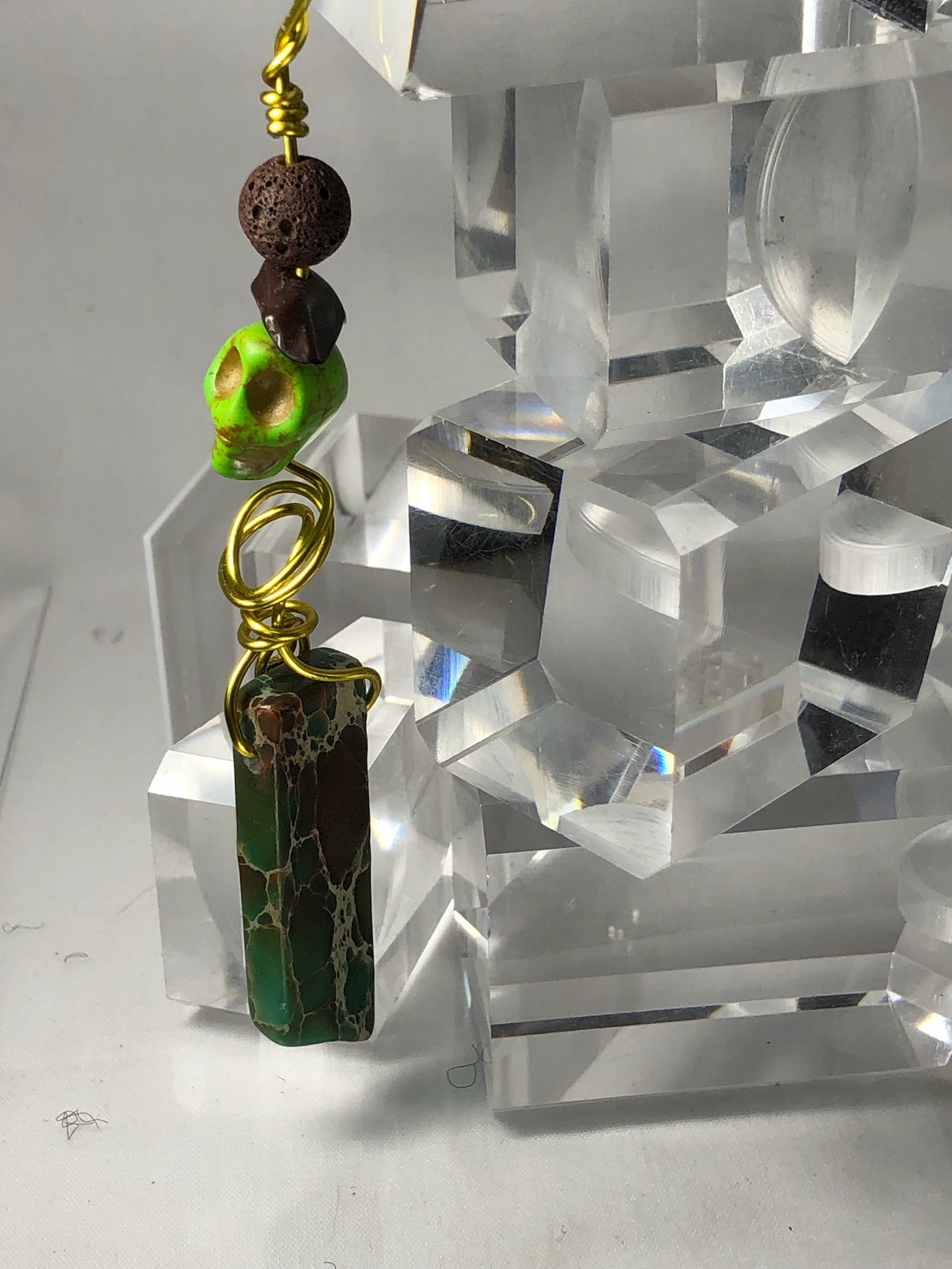 Australian green turquoise green turquoise sculpted skull head and brown volcano rock
