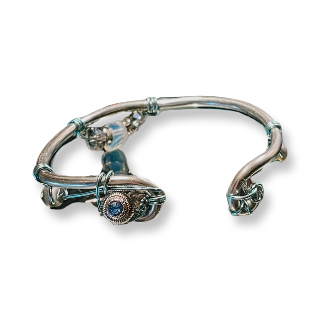 Immerse yourself in the enchanting allure of the "Moonlit Serenade Bracelet," where the ethereal moonstone and the captivating blue topaz rhinestone unite in perfect harmony. This exquisite bracelet effortlessly combines celestial energies with refined elegance, creating a wearable masterpiece that exudes tranquility and grace.