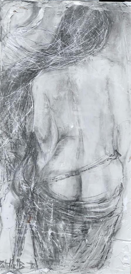At the center of this piece stands the figure of the Pirate Queen, an embodiment of strength, resilience, and sensuality. Rendered in intricate sketch-like strokes, the monochromatic palette emphasizes the raw emotion and intensity of her character. The contrast between the deep blacks and bright whites creates a dramatic tension, suggesting both the tumultuous nature of the ocean and the challenges she faces. The flowing lines and dynamic forms evoke movement and energy, as if the very spirit of adventure and rebellion is alive within the canvas.