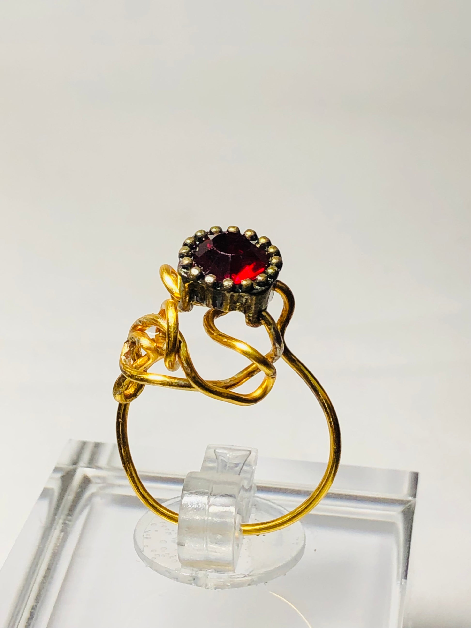 Indulge in the mesmerizing allure of the "Crimson Radiance" ring. Let the vibrant red rhinestone and golden wire speak volumes about your passion, strength, and style. Wear this ring as a symbol of your fiery spirit and ability to attract love, success, and limitless possibilities.