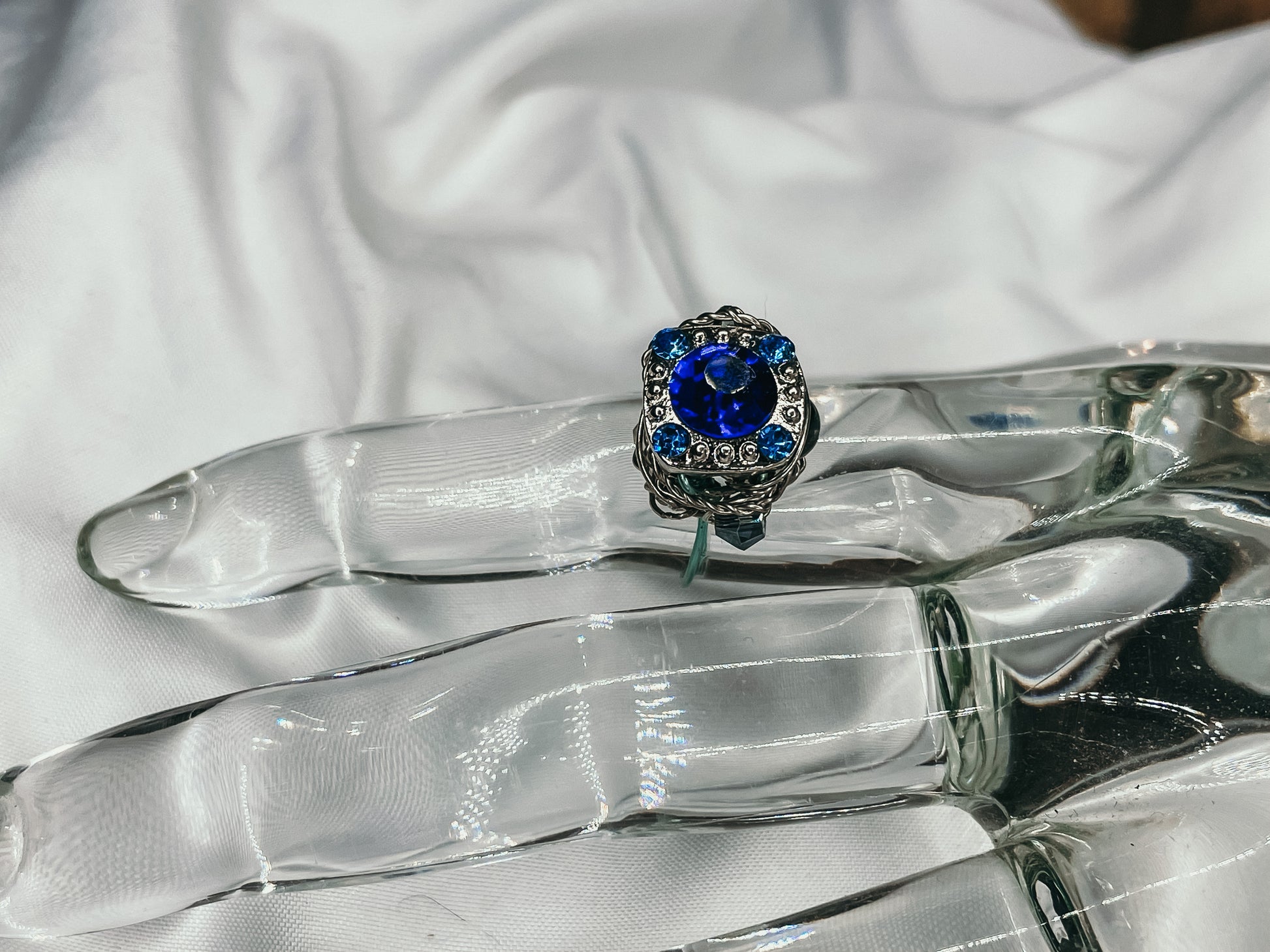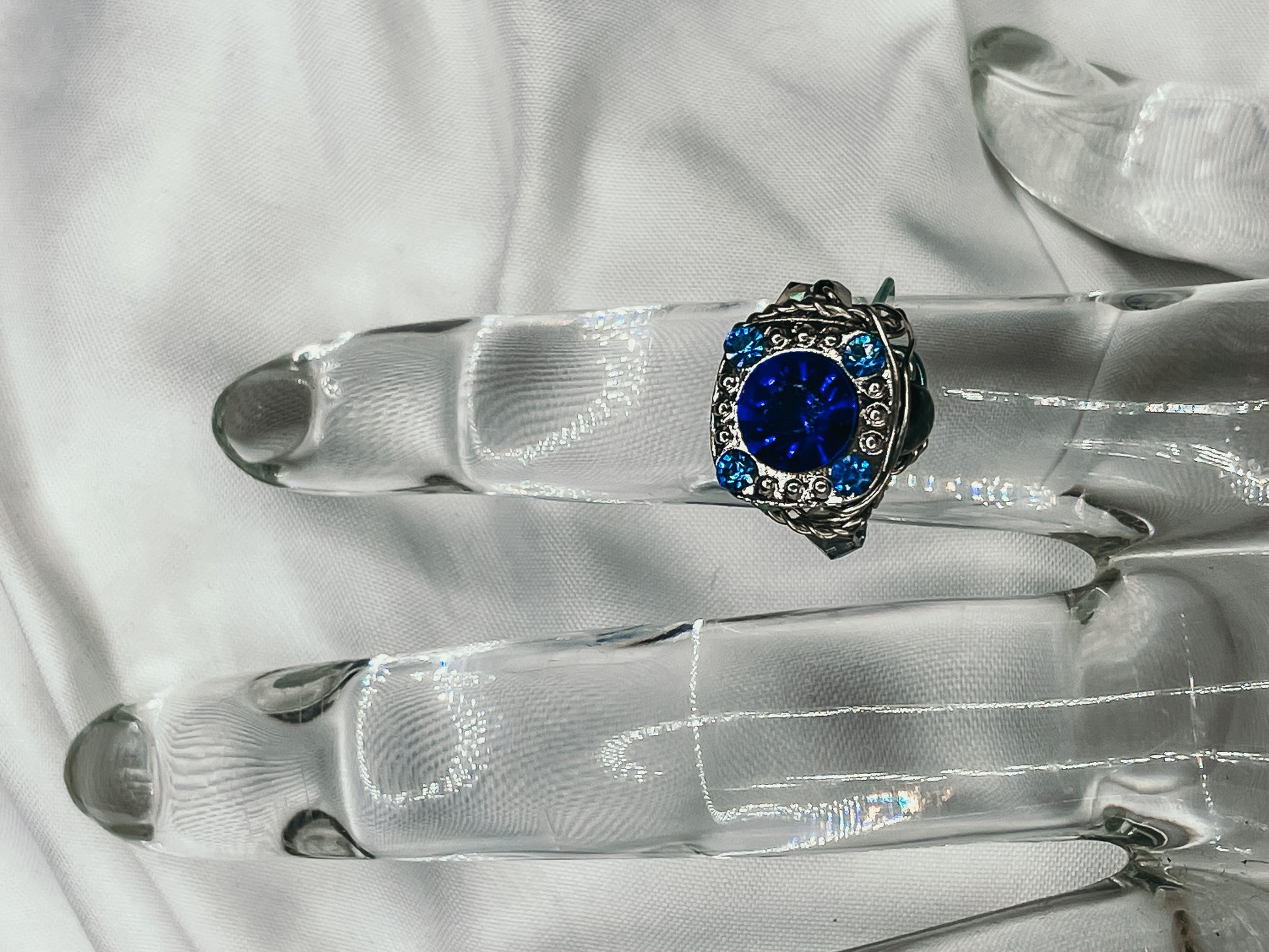 Introducing the enchanting "Sapphire Serenity" ring, a mesmerizing piece that embodies tranquility, wisdom, and elegance. Adorned with a captivating sapphire rhinestone, this ring is a true reflection of timeless beauty and profound significance.