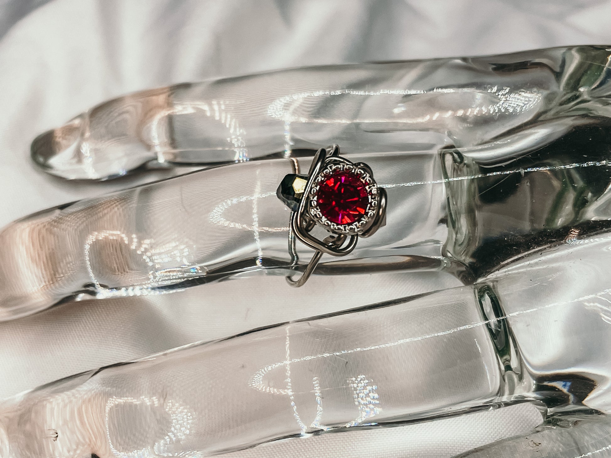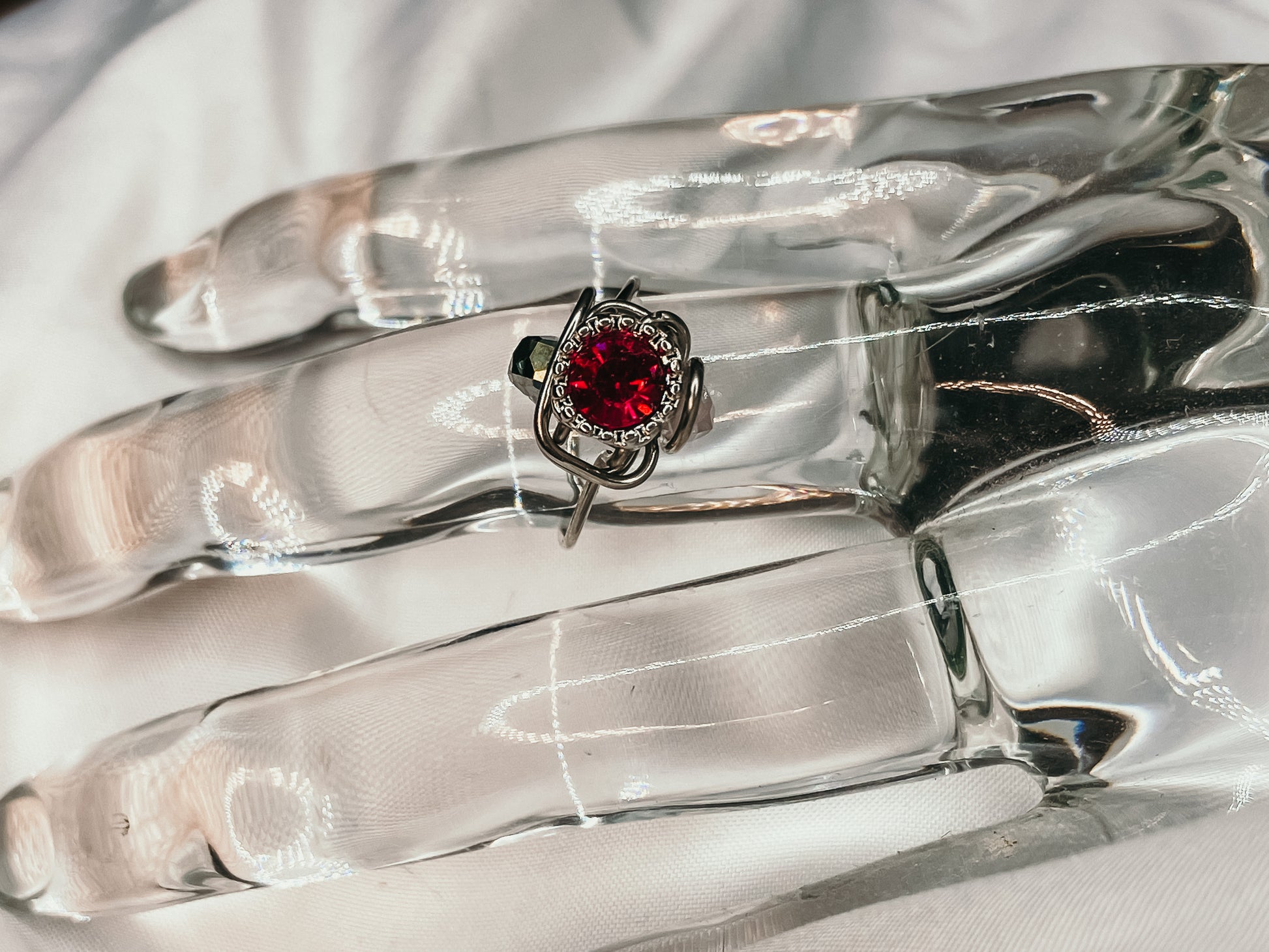 Introducing a timeless beauty, our exquisite ring adorned with a radiant ruby rhinestone. This captivating piece is a symbol of passion, vitality, and courage, making it the perfect accessory for those who embrace life with a fiery spirit.